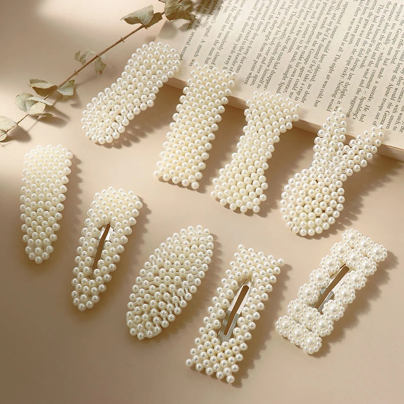 1Set Handmade Pearls Hair Clips Pin for Women Fashion Geometric Flower Barrettes Headwear Girls Sweet Hairpins Hair Accessorie