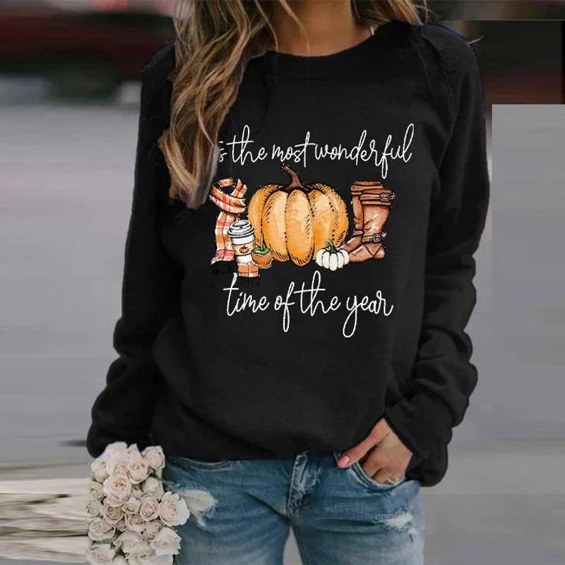 2020 Art Printed Tops Christmas Style Tees Streetwear Ladies Casual Shirt Long Sleeved O Neck Personality Printed Loose T Shirts