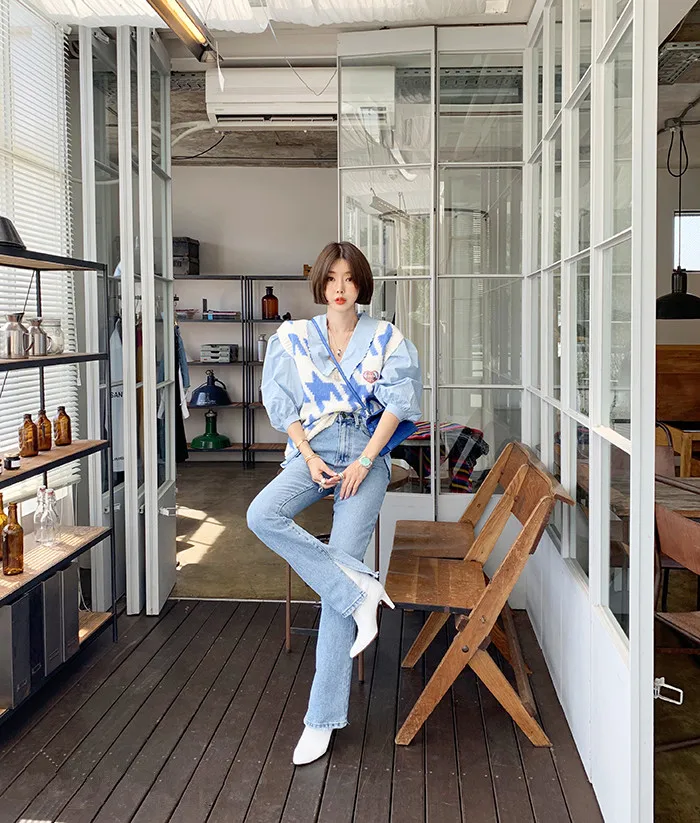 2020 Autumn Fashion Women High Waist Denim Jeans Straight Jeans Side Split Jeans Vintage Female Long Capri Pants