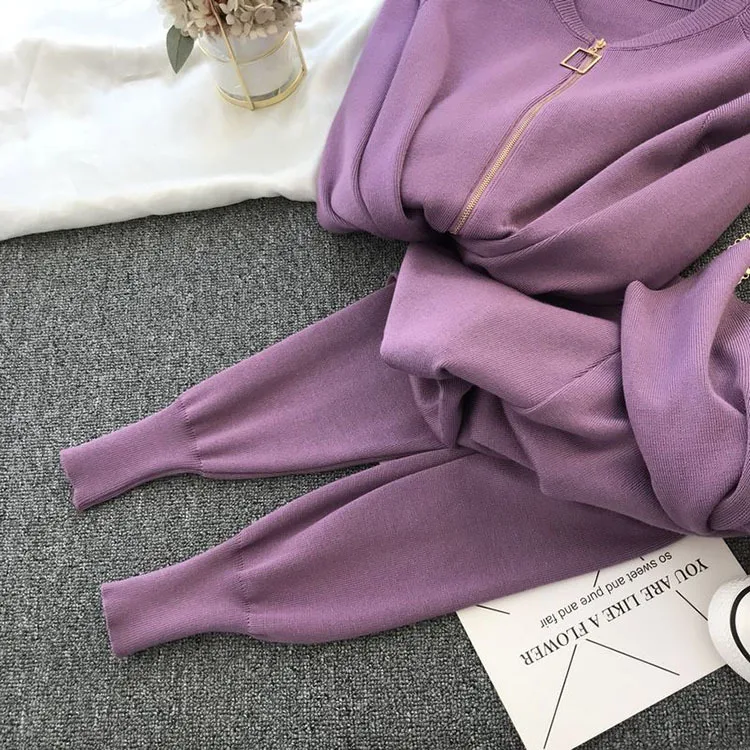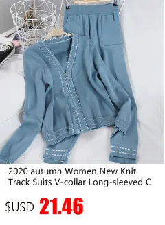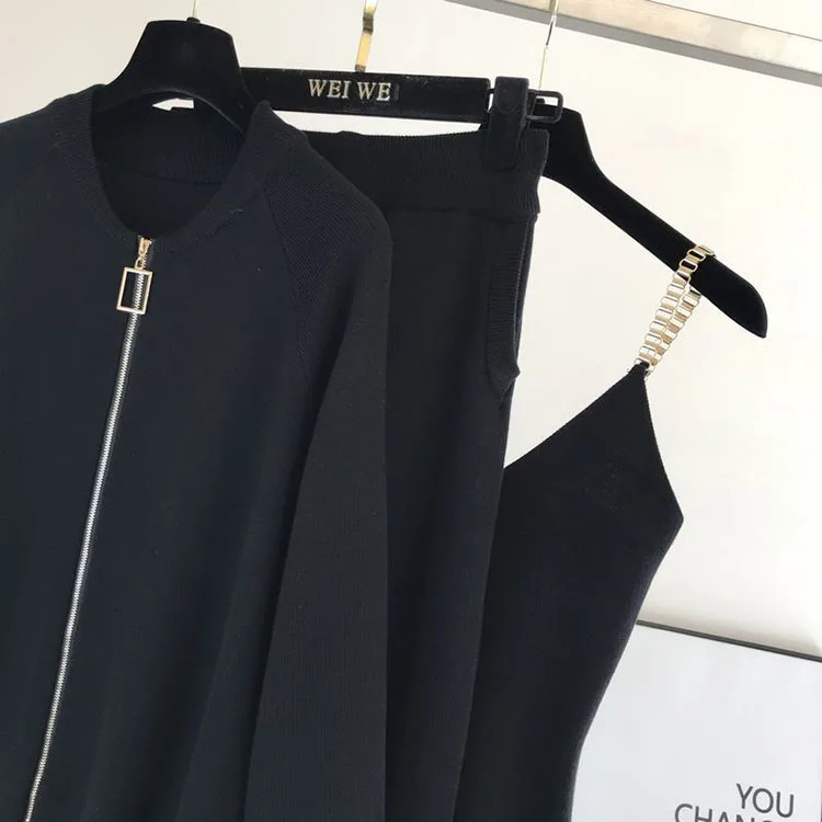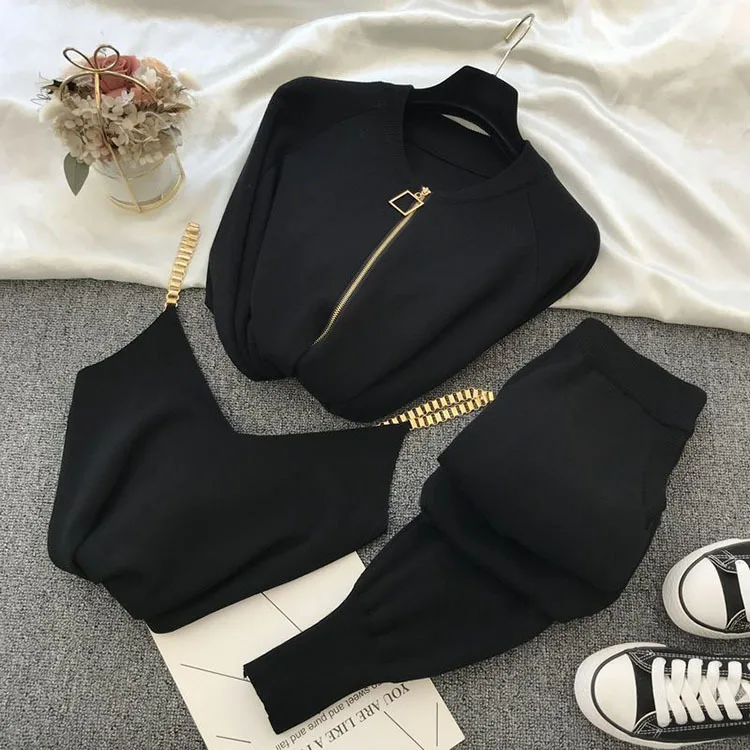 2020 autumn Knitted sweater suit casual new product temperament chain vest knitted jacket + elastic pants three-piece sets TZ423