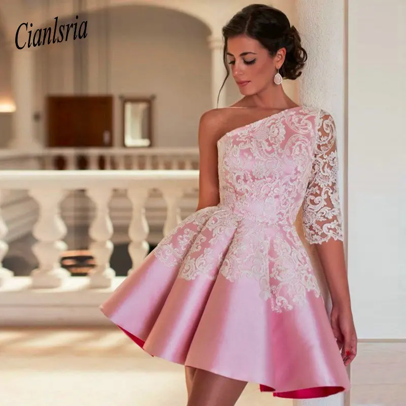 2020 Ball Gown Homecoming Dresses One Shoulder short prom dress robe de soiree Pink Evening Party Dress Sexy Cocktail Dresses
