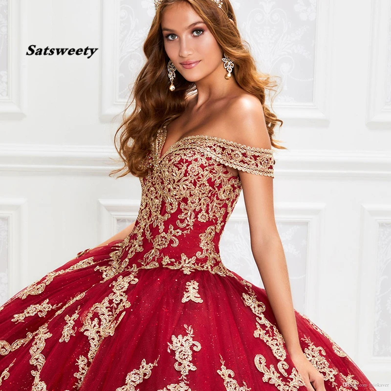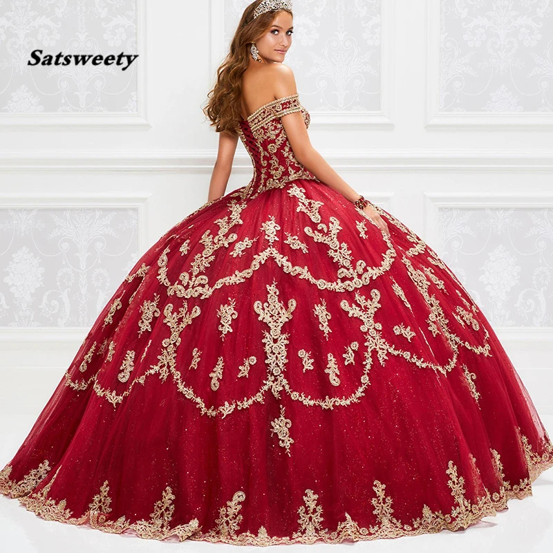 2020 Gorgeous Red Quinceanera Dresses With Gold Appliqued Sequins Lace Up Ball Gown Prom Dress Vestido De Festa Sweet 16 Dress