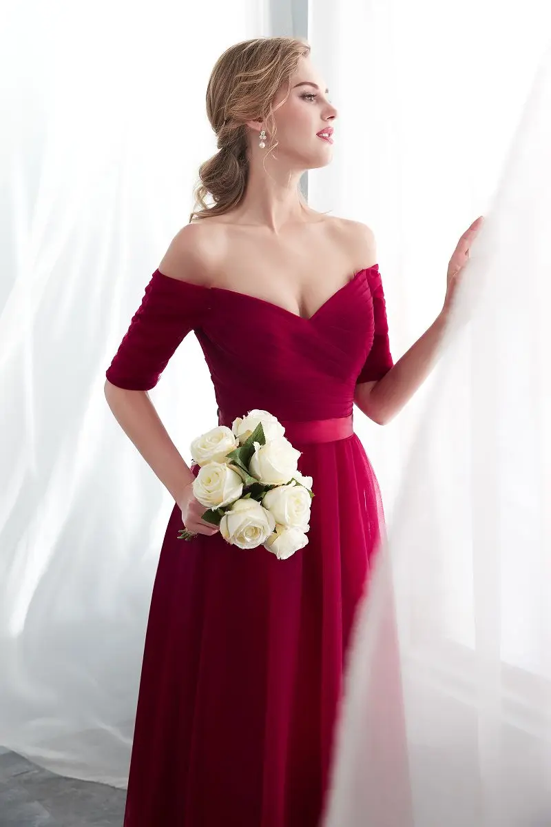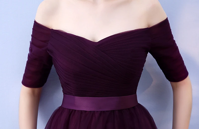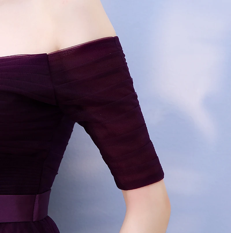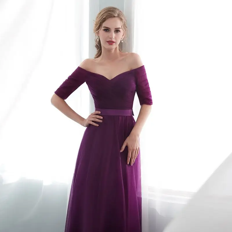 2020 Hot Purple Elegant Bridesmaid Dresses Satin Tulle A-Line Royal Blue Half Sleeve Wedding Party Gowns Prom Dresses For Women