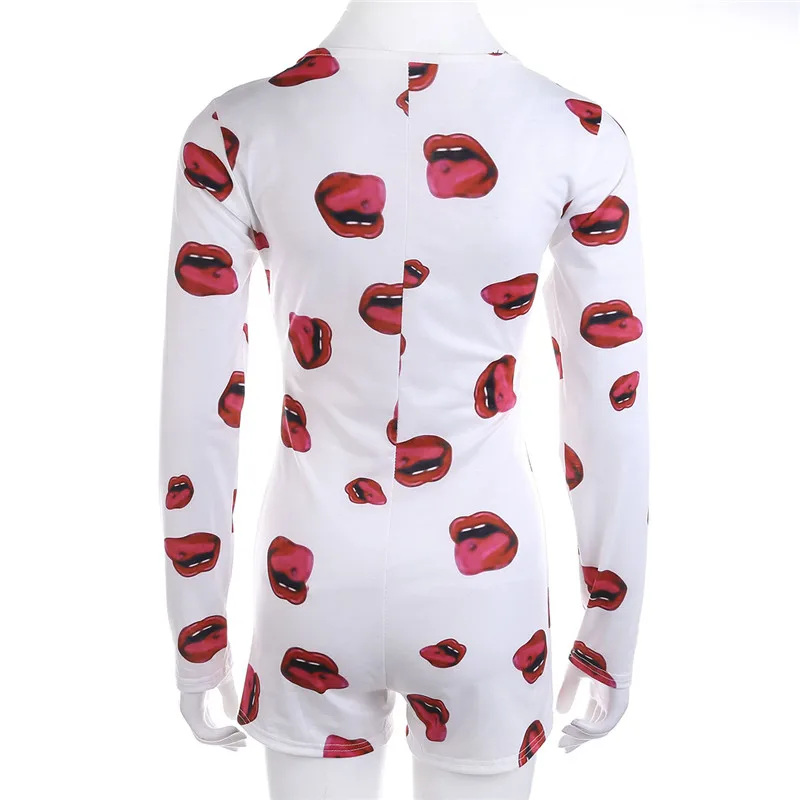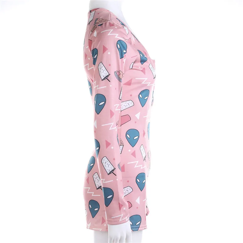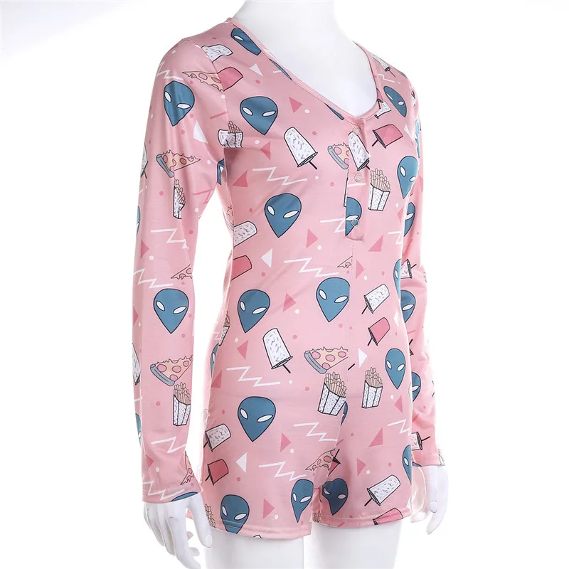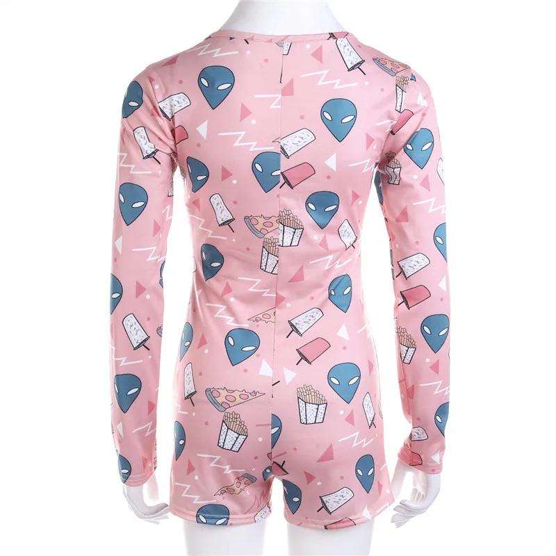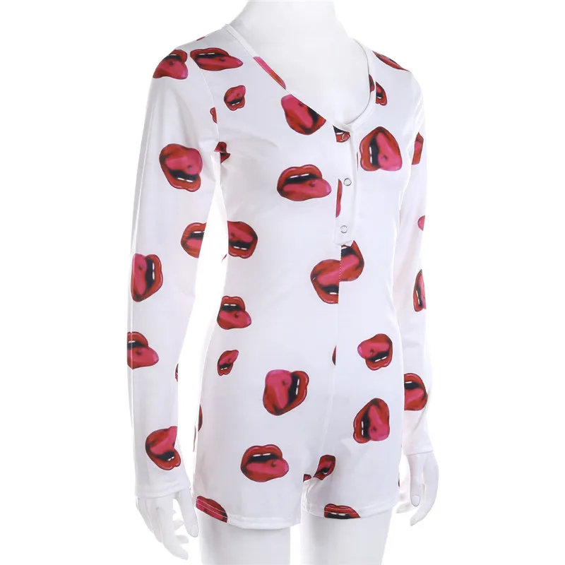 2020 Hot Sale Women Sexy Stretchy Pajamas Long Sleeve V-Neck Pineapple Star Heart Printed Bodycon Summer Lady Jumpsuit Romper