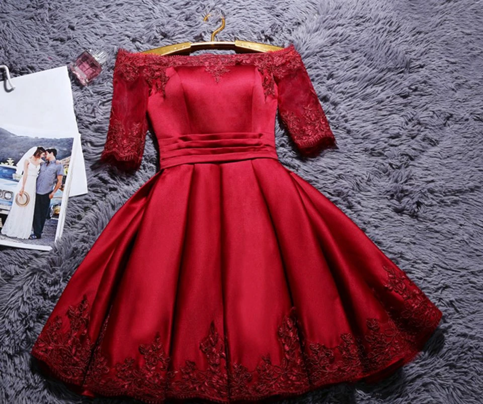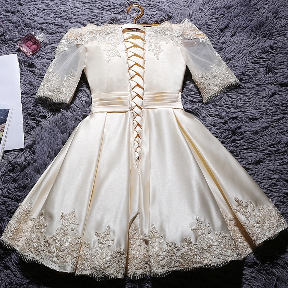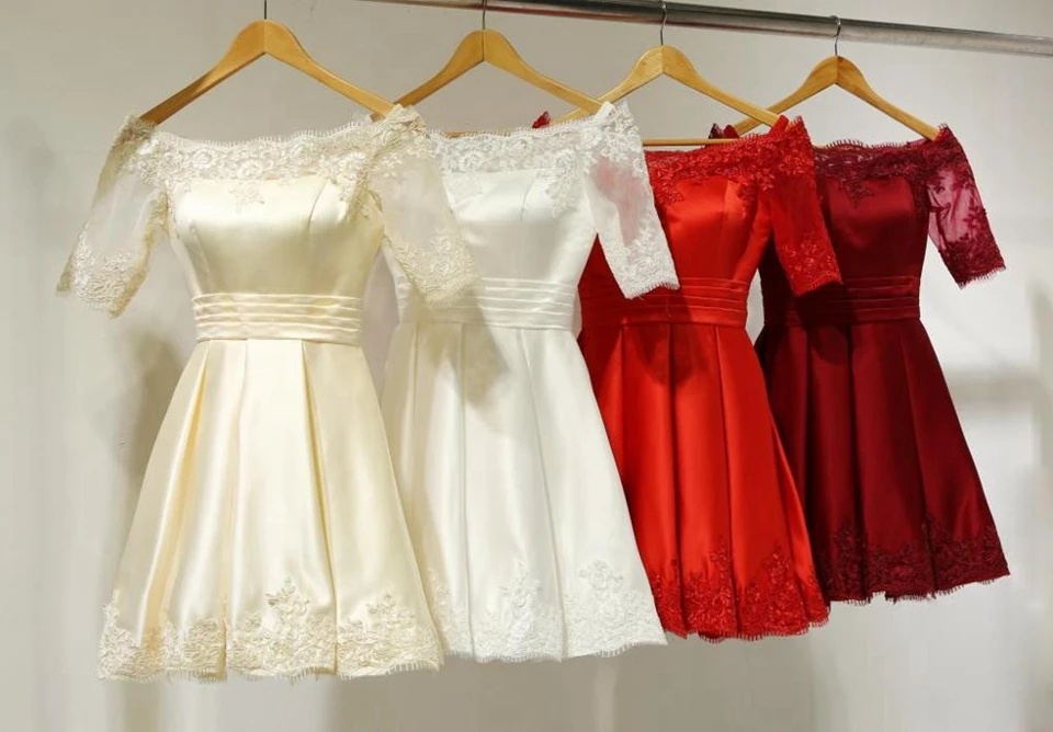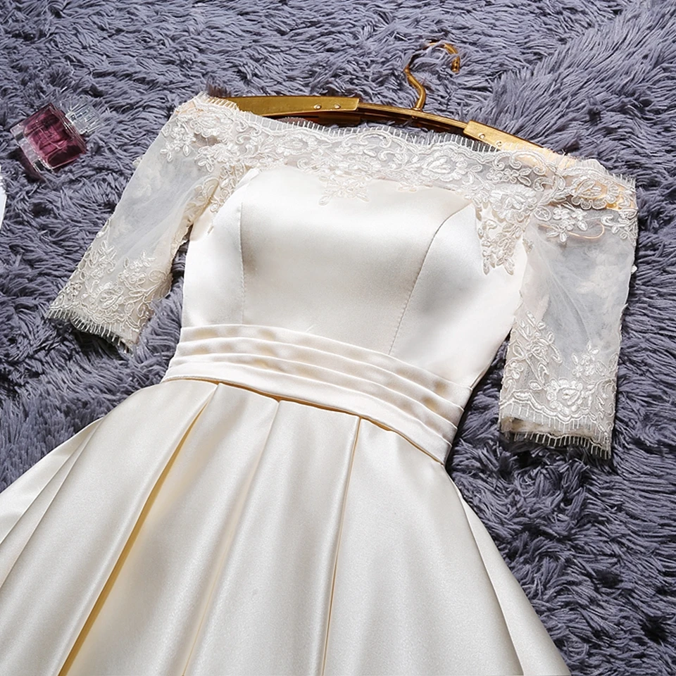 2020 Ivory Off Shoulder Homecoming Dress Boat Neck Half Sleeves Cocktail Dresses Satin Elegant Women Graduation Short Prom Gowns