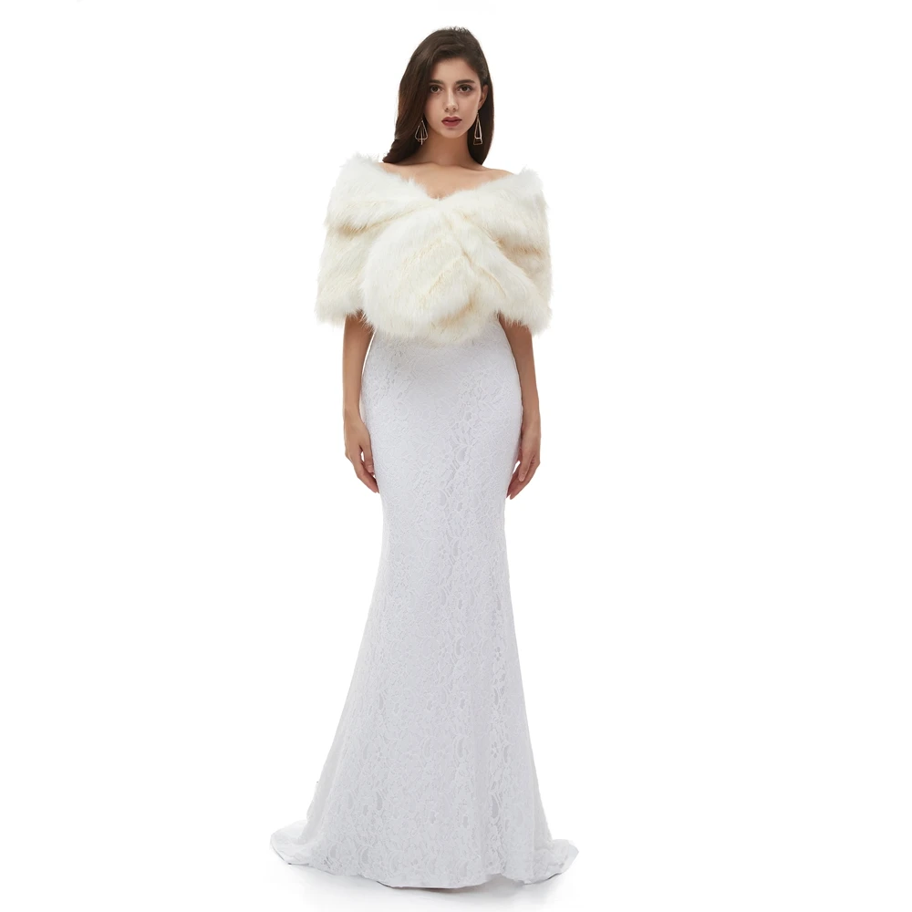 2020 Ivory Shawls Fur for Formal Wedding Evening Prom Dresses Jackets Warm Capes Winter Women Boleros Wraps For marriage Capas