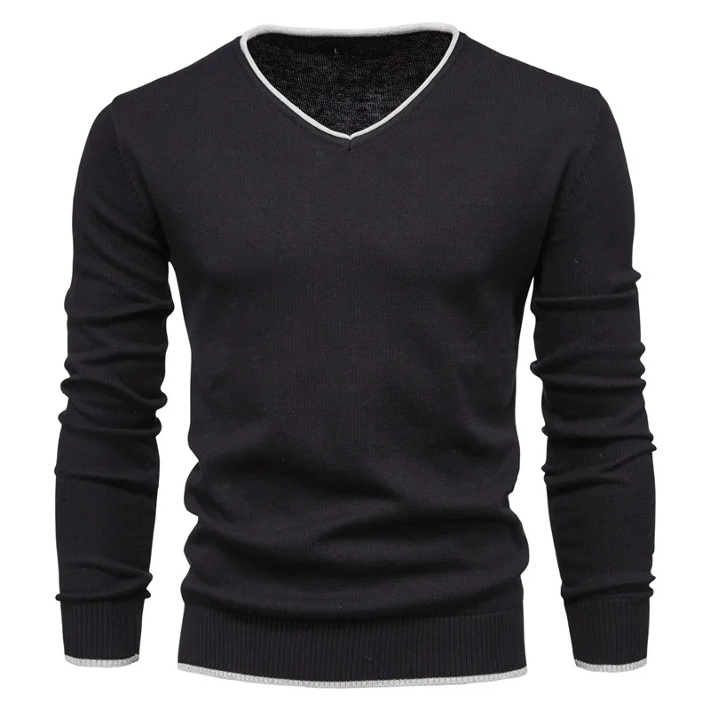 2020 New 100% Cotton Pullover V-neck Men’s Sweater Solid Color Long Sleeve Autumn Slim Sweaters Men Casual Pull Men Clothing