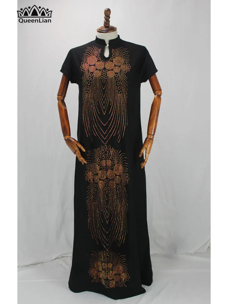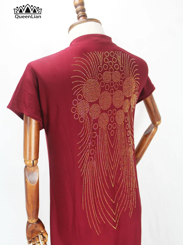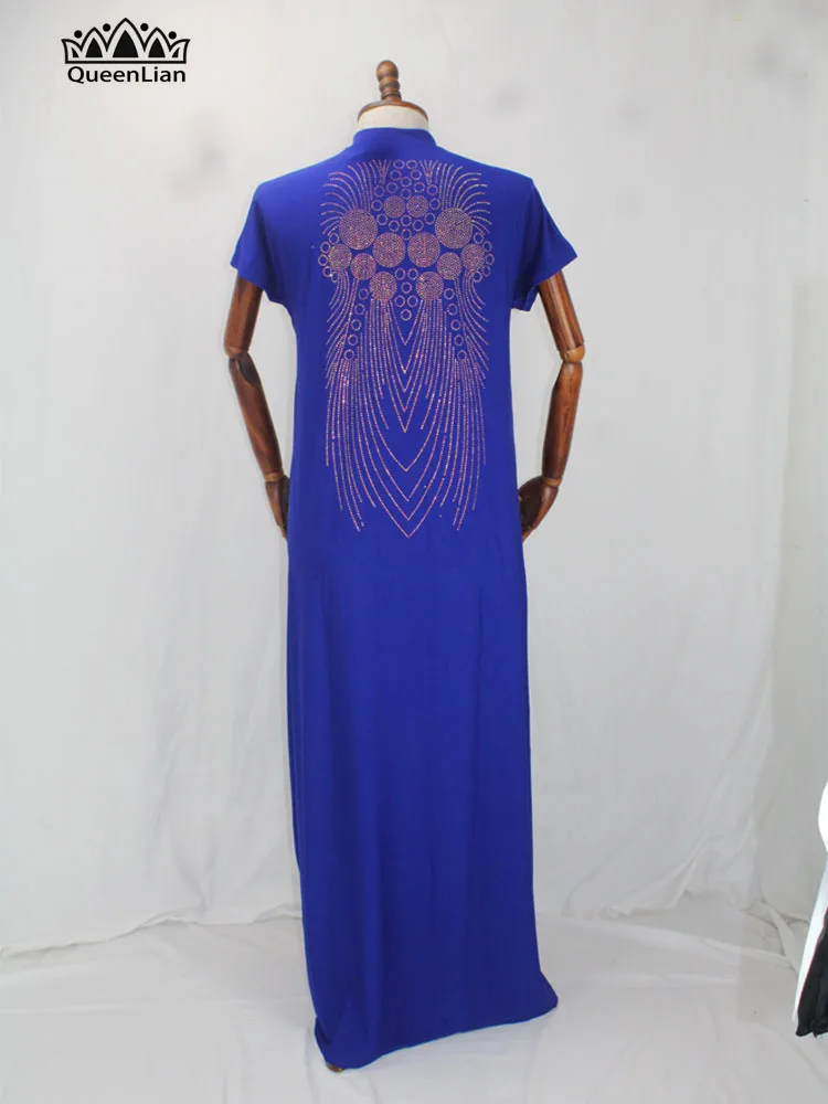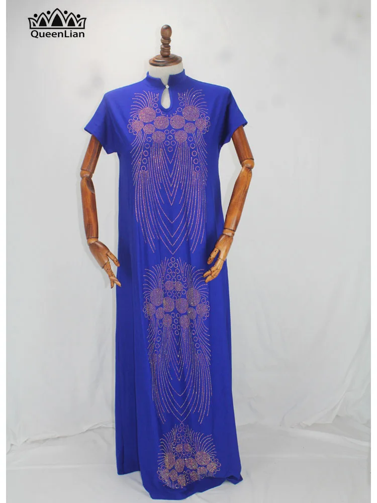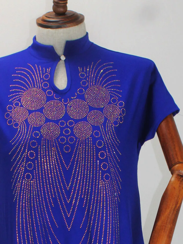 2020 New African Design Bazin Long Stick Diamond Short Sleeve High Collar Dashiki Dress For Lady