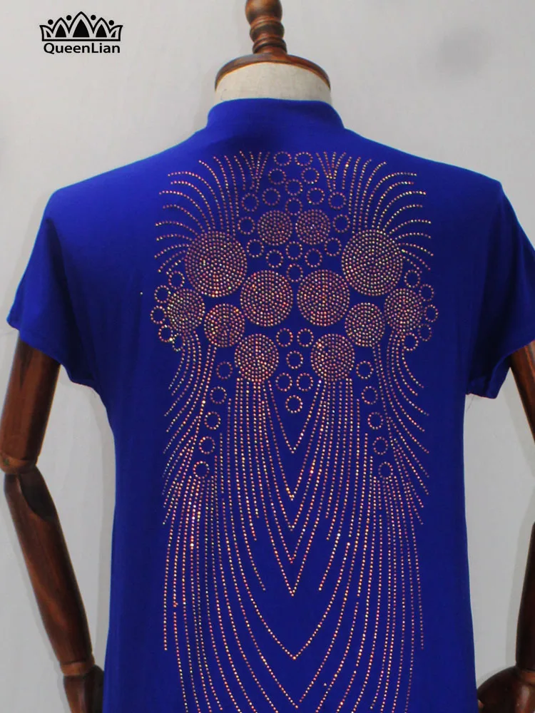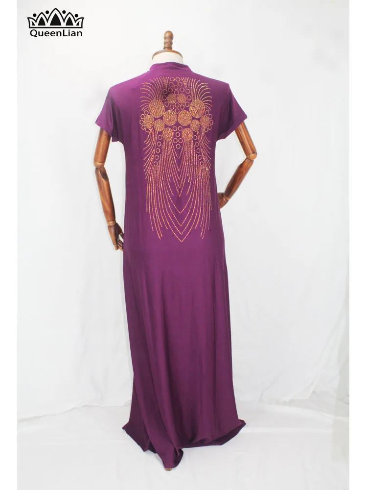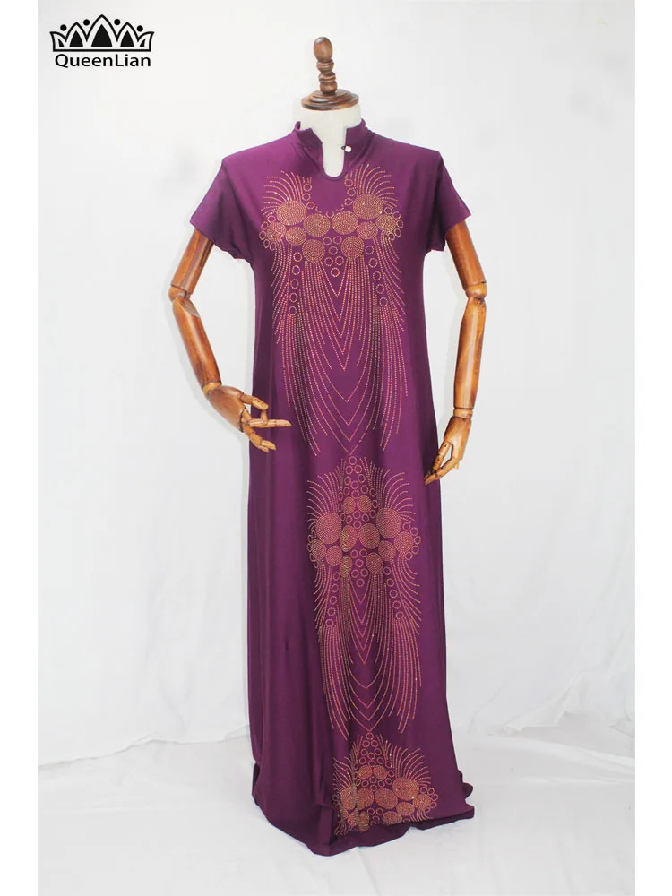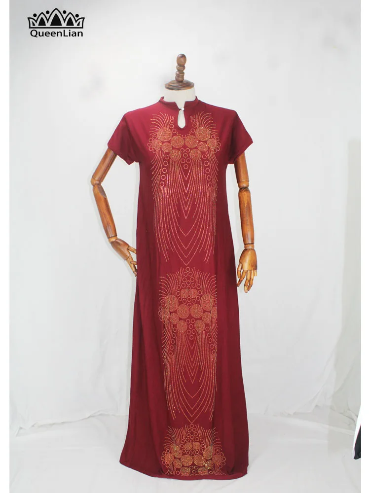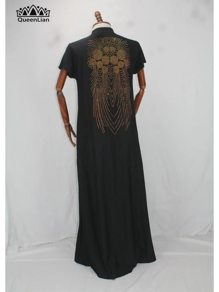 2020 New African Design Bazin Long Stick Diamond Short Sleeve High Collar Dashiki Dress For Lady