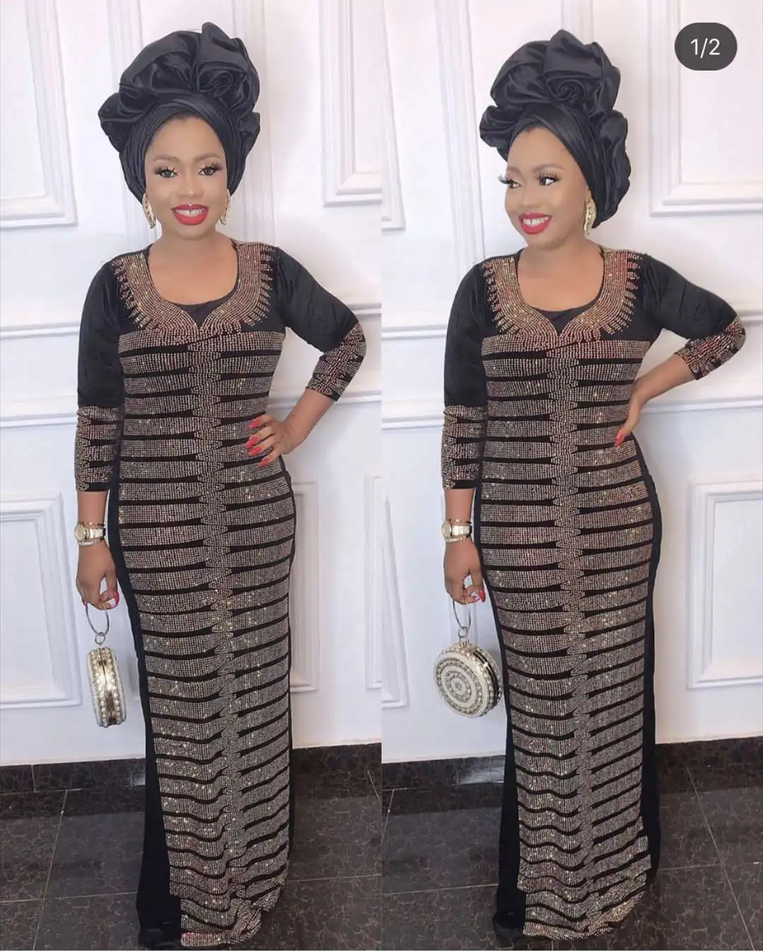 2020 new african fashion free size black with gold and black with silver long dress without scarf very elastic