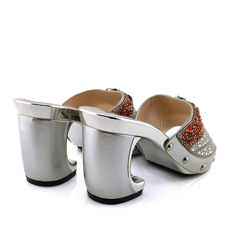 2020 New Arrival Fashionable Italian Shoes and Bag Sets Silver Color Women’s Shoes with Appliques for African lady Sandals