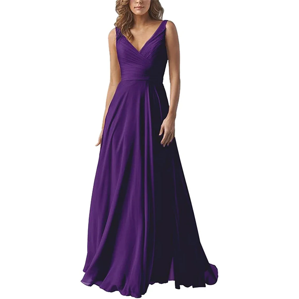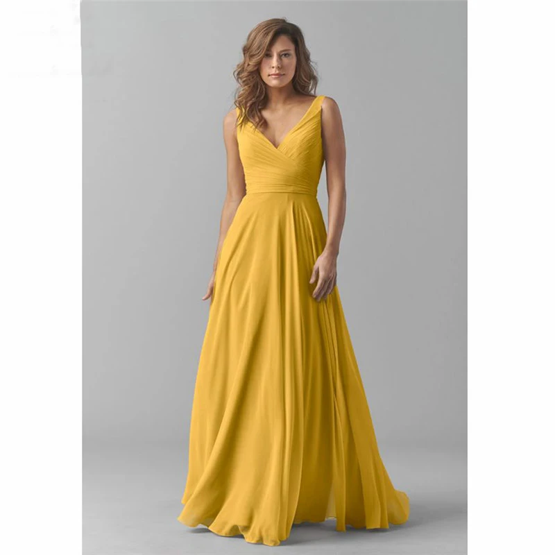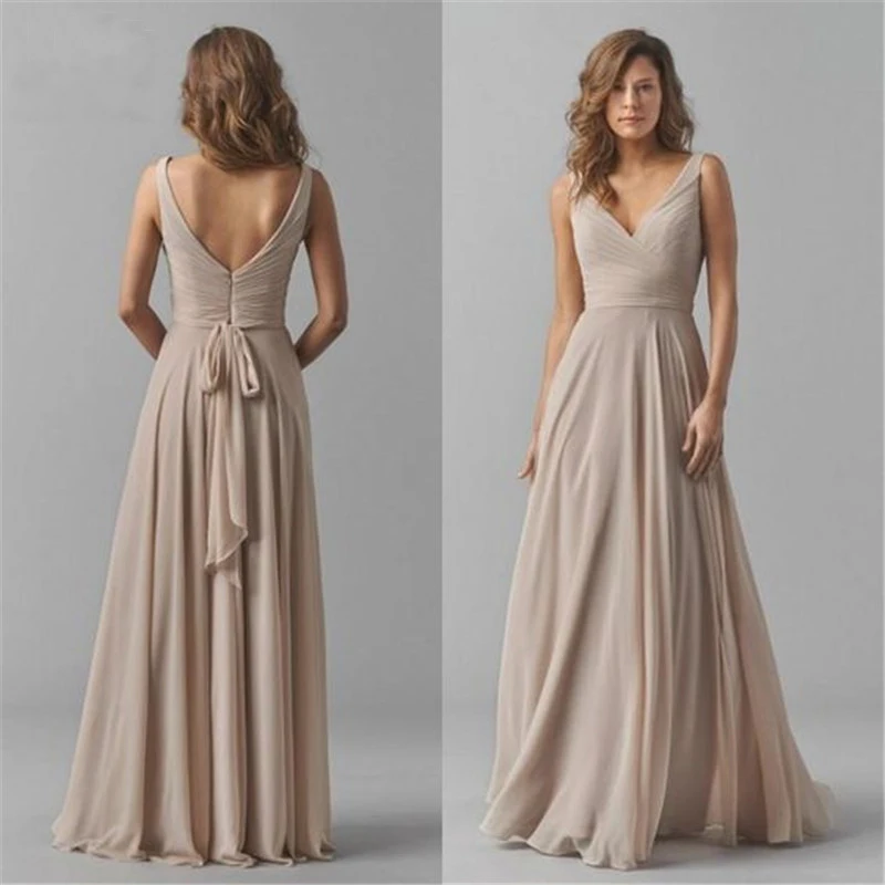 2020 New Hot Vintage Bridesmaid Dresses V-Neck Wedding Party Dress Pleat Chiffon Sleeveless Prom Bridesmaid Dresses for women