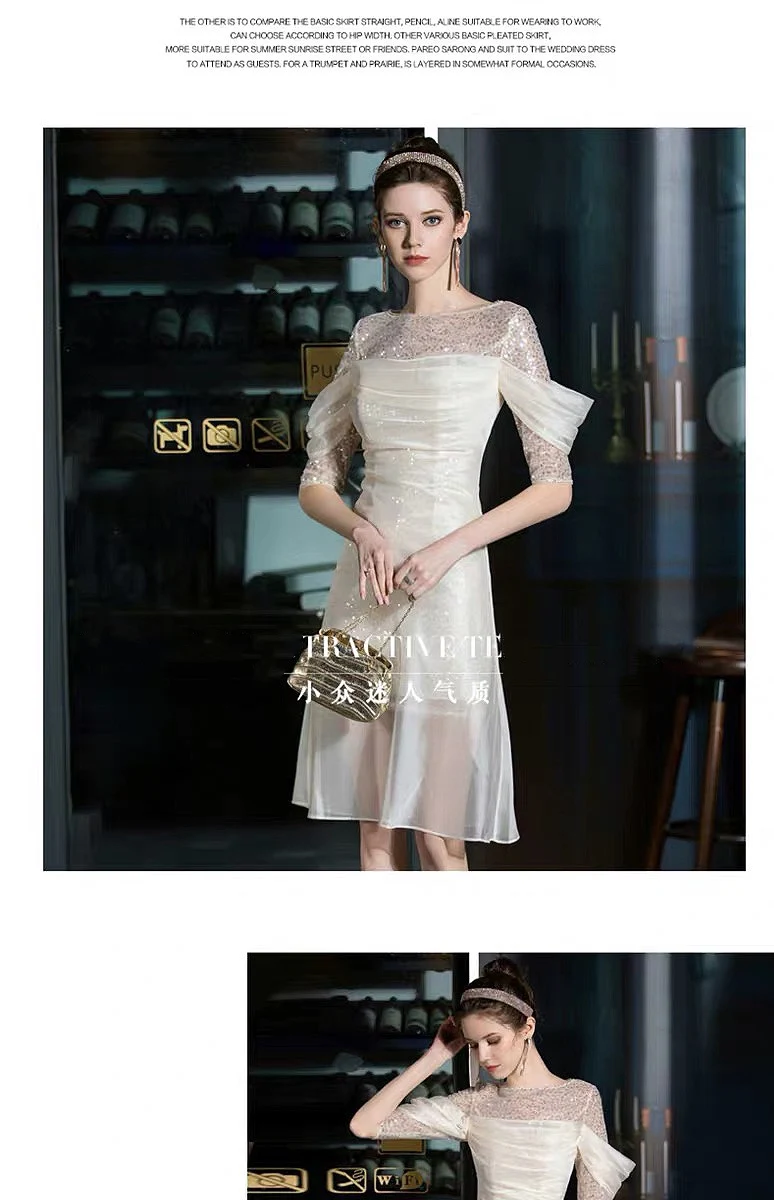 2020 Noble Prom Dresses Half Sleeves Tulle sequins Knee Length Wedding Guest Formal Cocktail Gowns Elegant Mother Bride Dresses