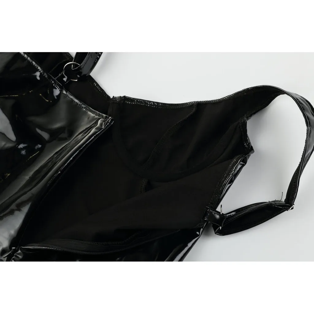 2020 Sexy Backless Club Party Short Dress Solid Black Wet Look Latex Bodycon Faux Leather Push Up Bra Mini Micro Dress Leotard