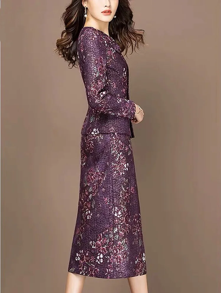 2020 Spring Summer Purple Noble Mother Of The Bride Dresses with Jacket Lace Wedding Events Party Prom Women Dresses Full Sleeve