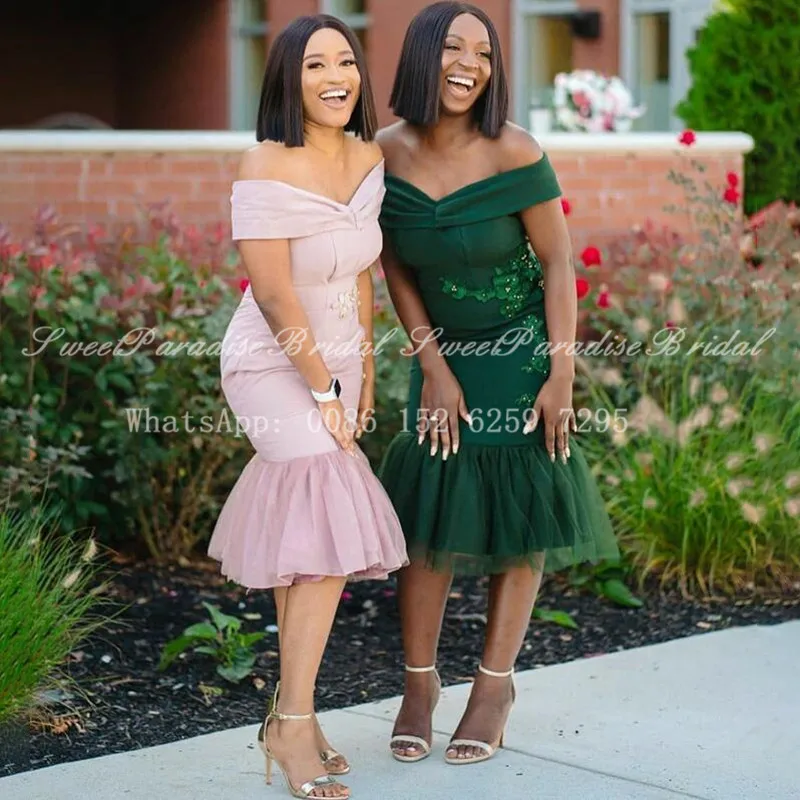2020 Tea Length Mermaid Bridesmaid Dresses With Appliques Beads Off Shoulder African Women Wedding Party Dress Prom Vestidos Robe De Soiree De Mariage Lace Up Back Floor Length Custom Made Under 100