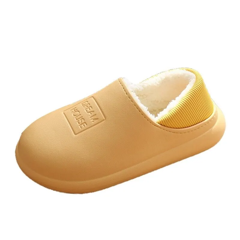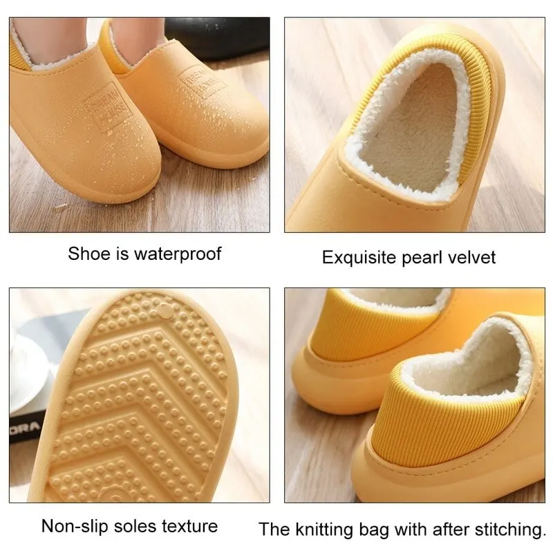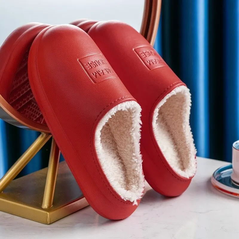 2020 Waterproof Winter Cotton Slippers Female Home Household Warm Women Shoes Indoor Out Leather Bread With Moon Cotton Shoes