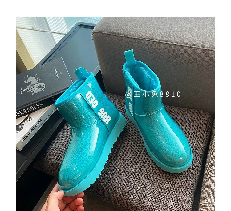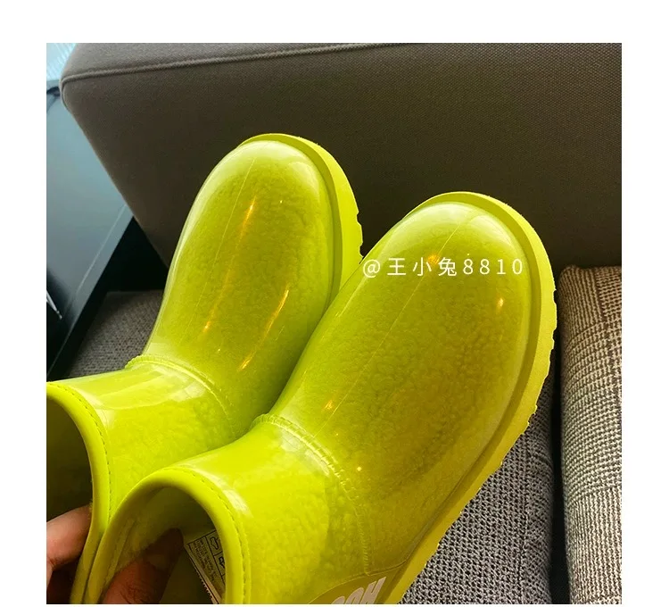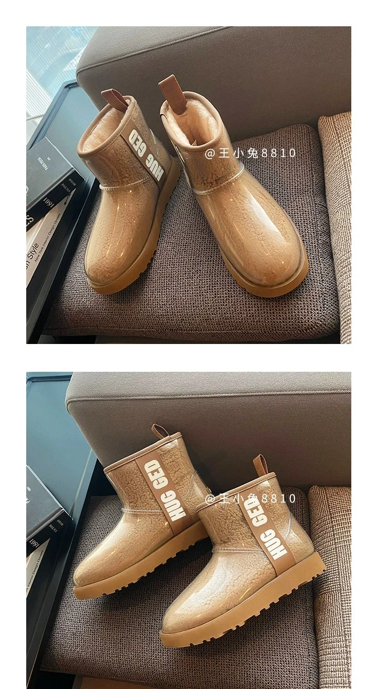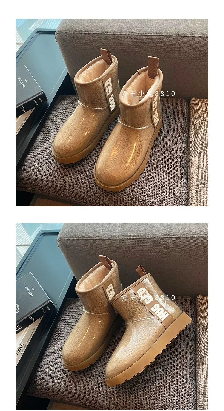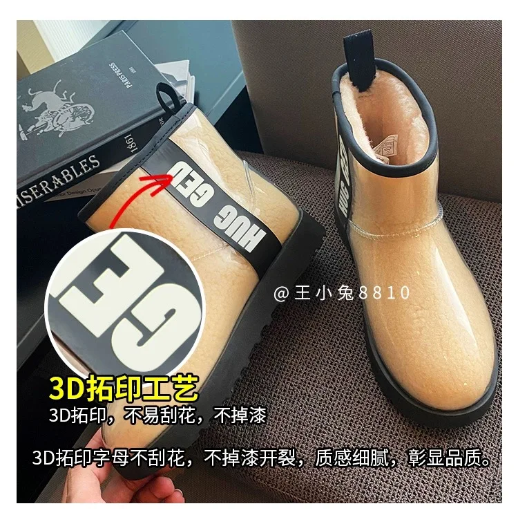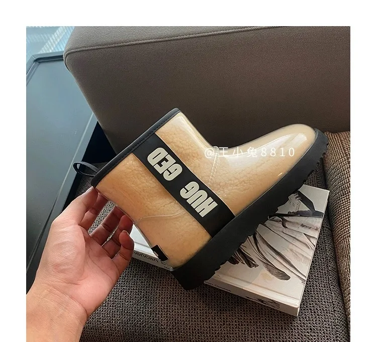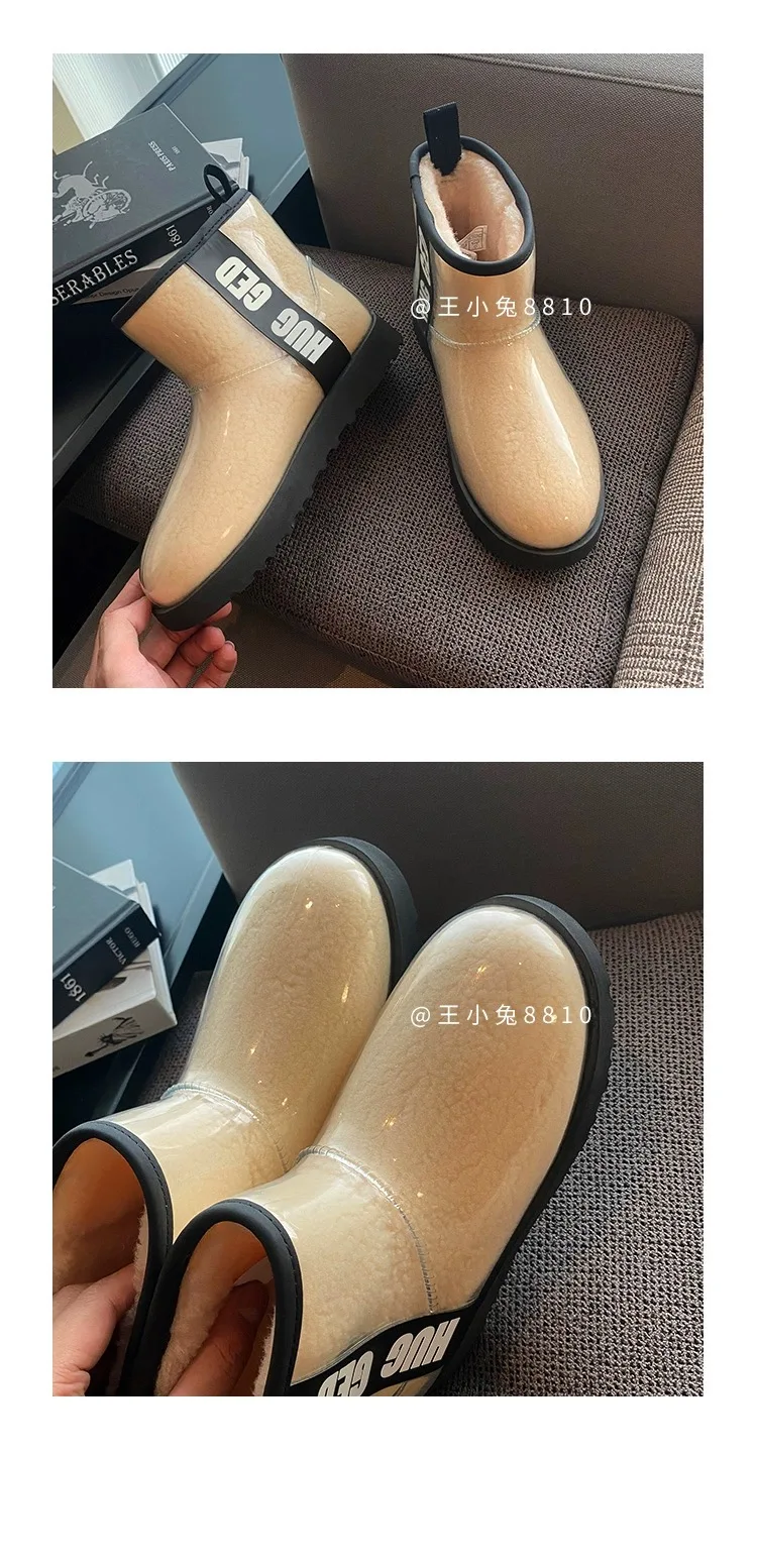 2020 Winter Snow Women Boots Plush Warm Shoes Platform Boots Women Transparent Waterproof leather Fur Round Head Shoes Woman