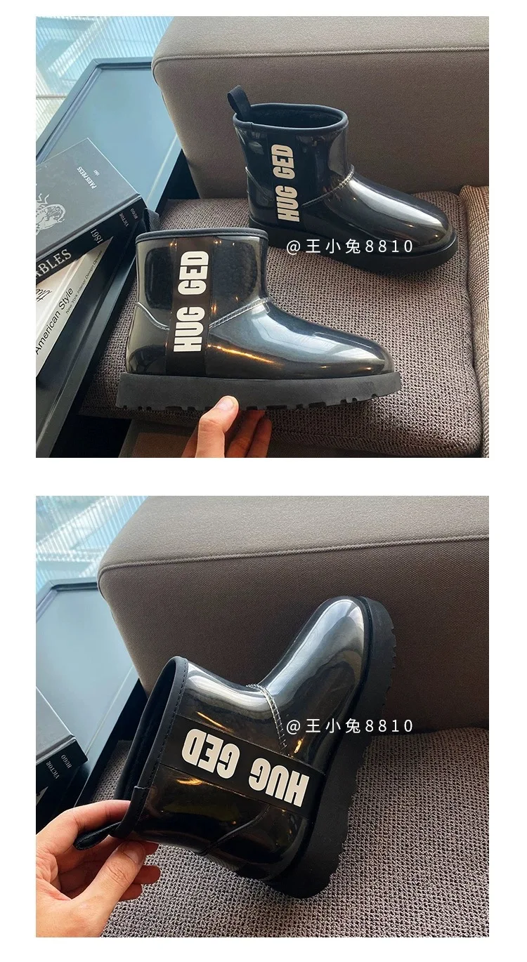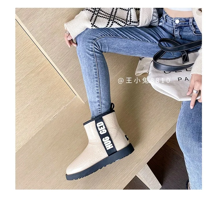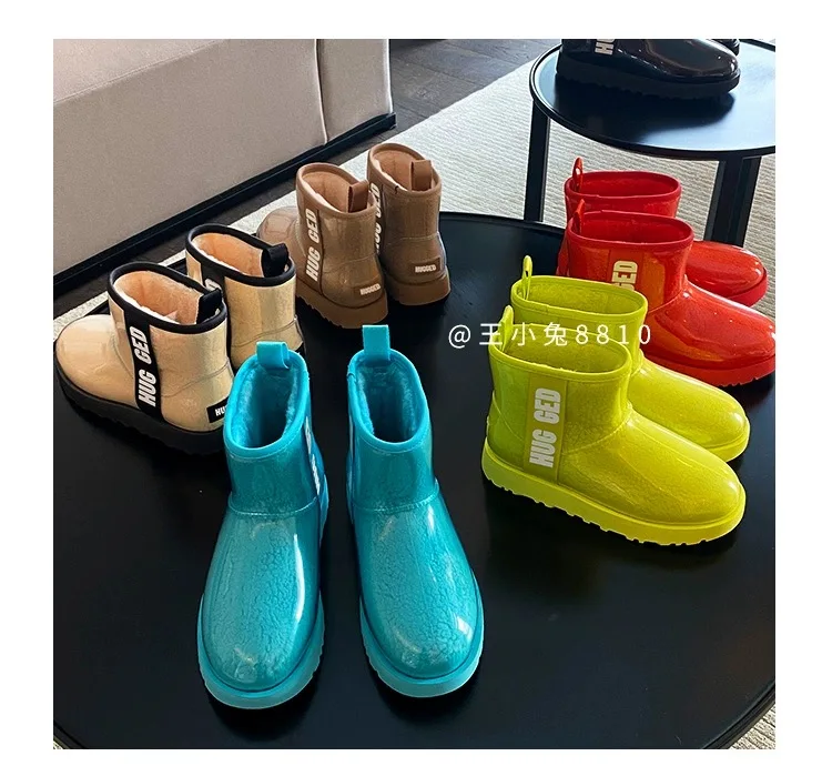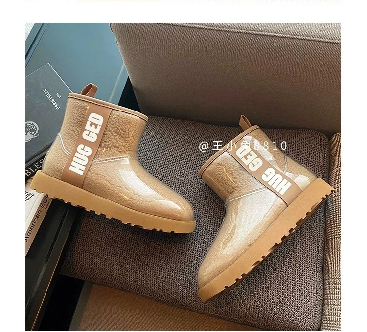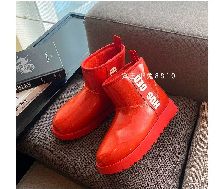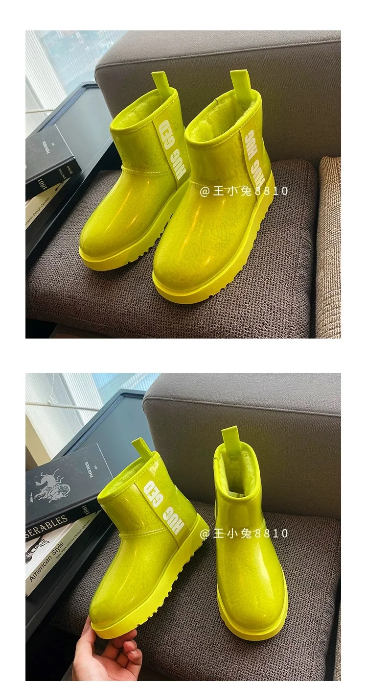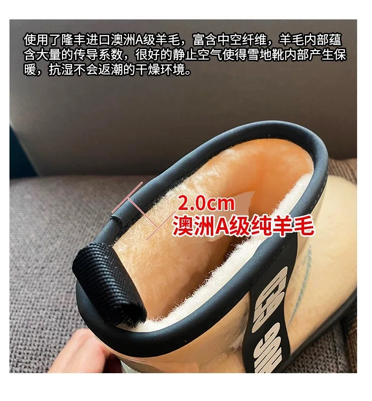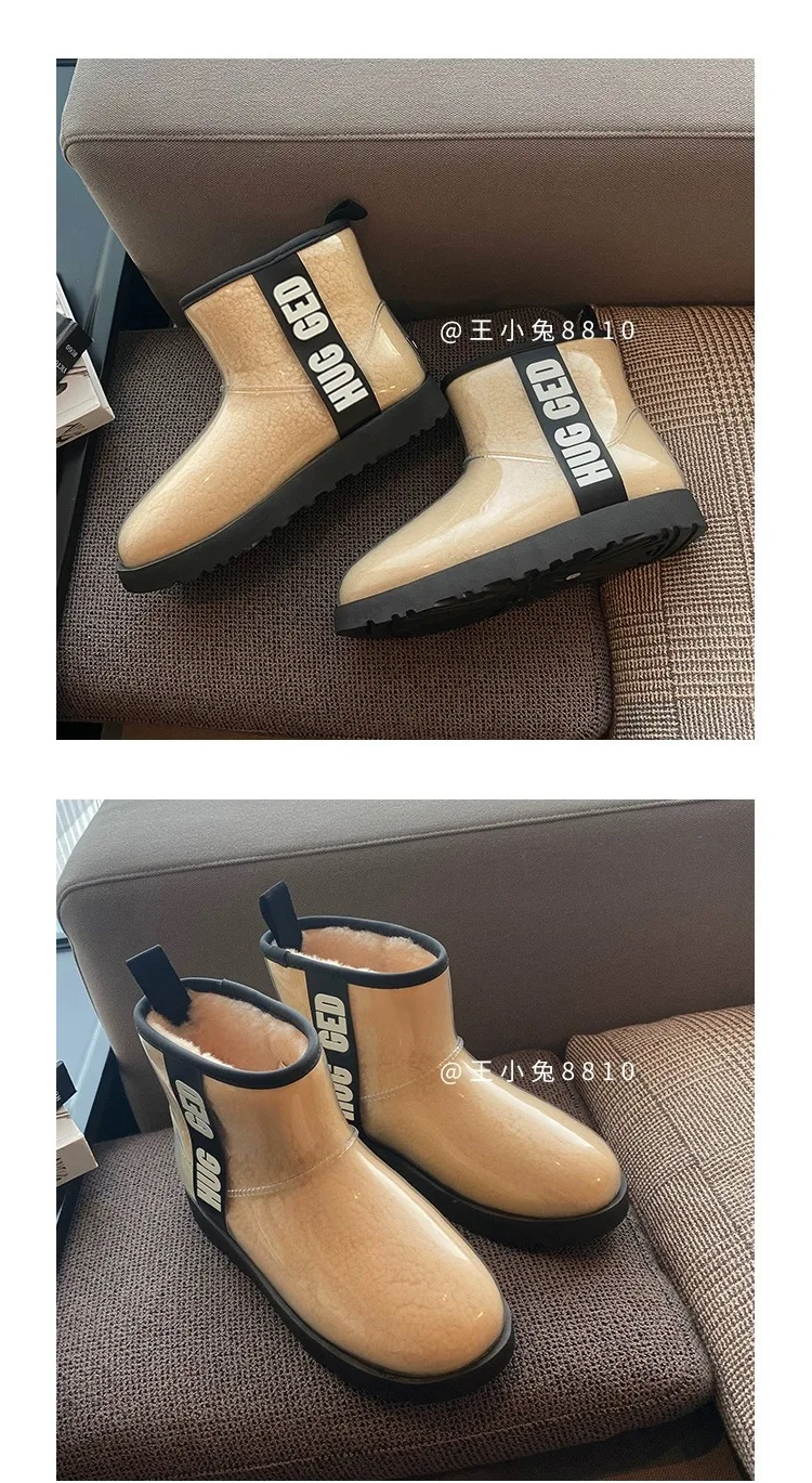 2020 Winter Snow Women Boots Plush Warm Shoes Platform Boots Women Transparent Waterproof leather Fur Round Head Shoes Woman