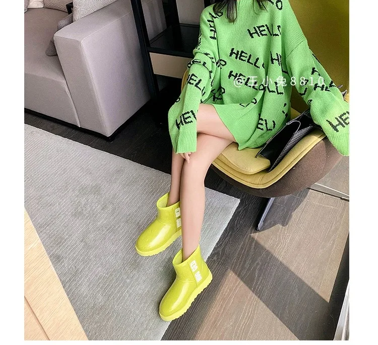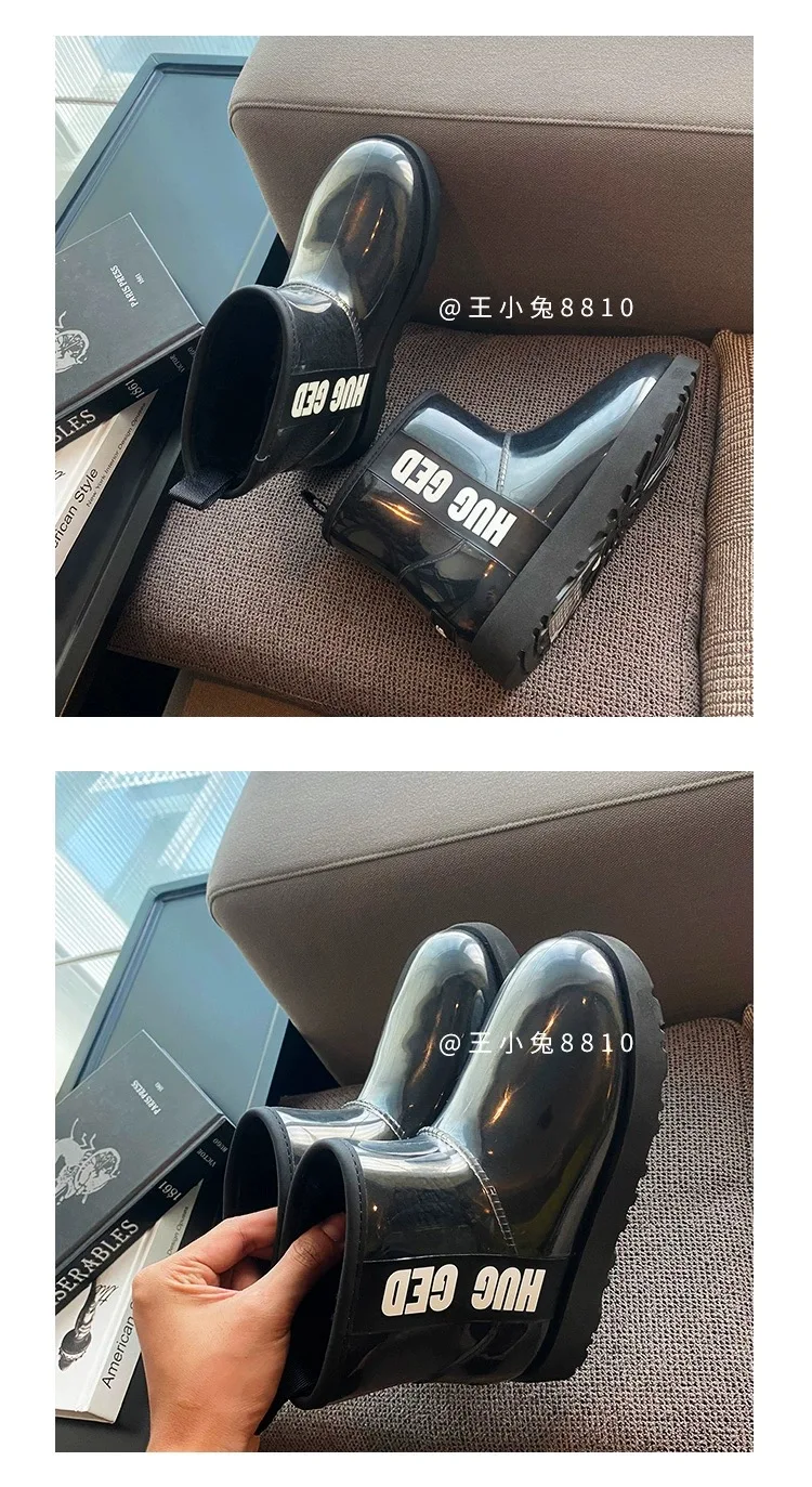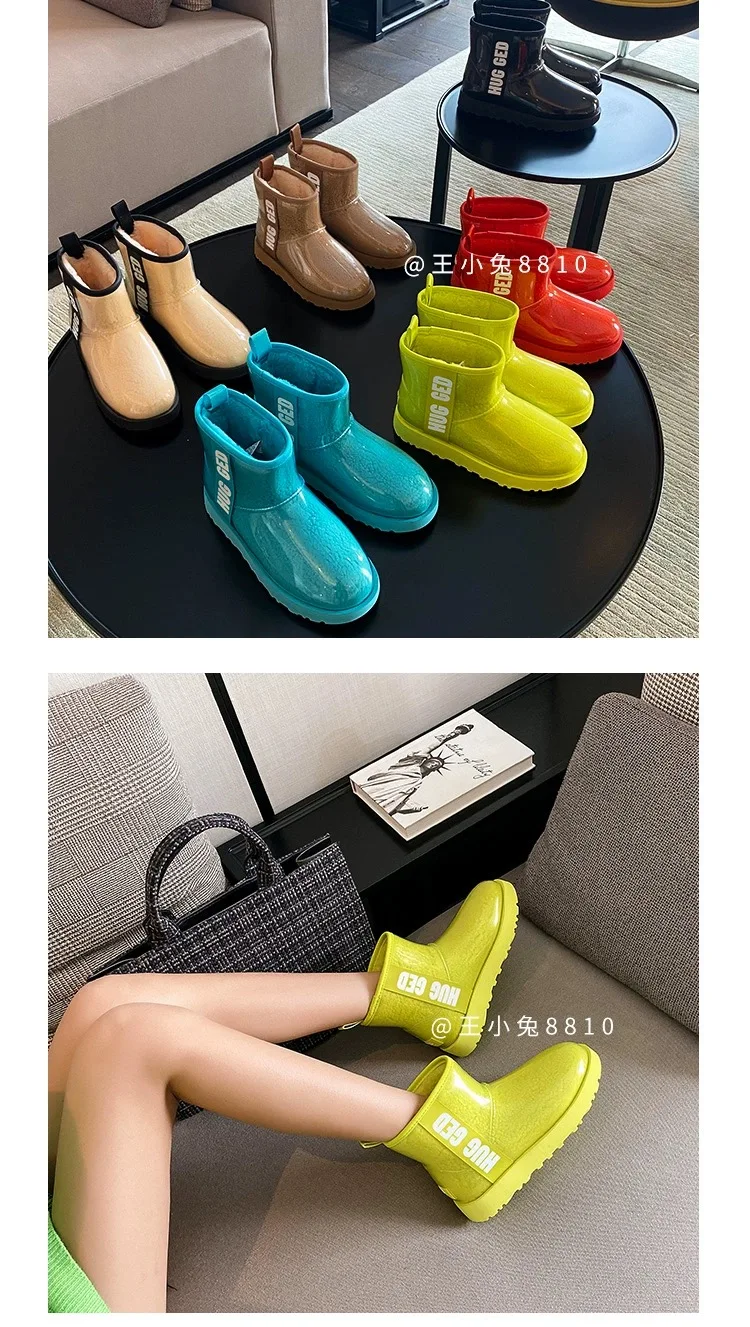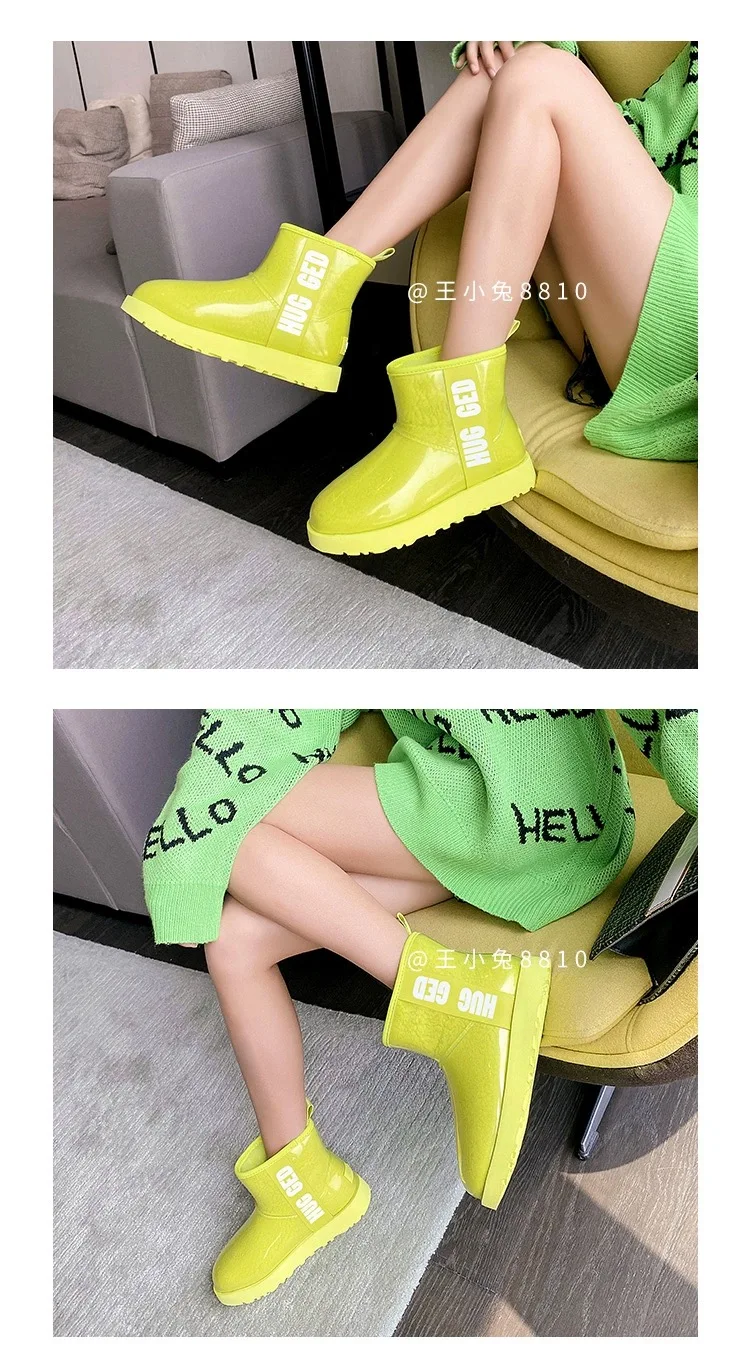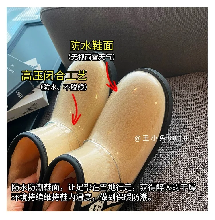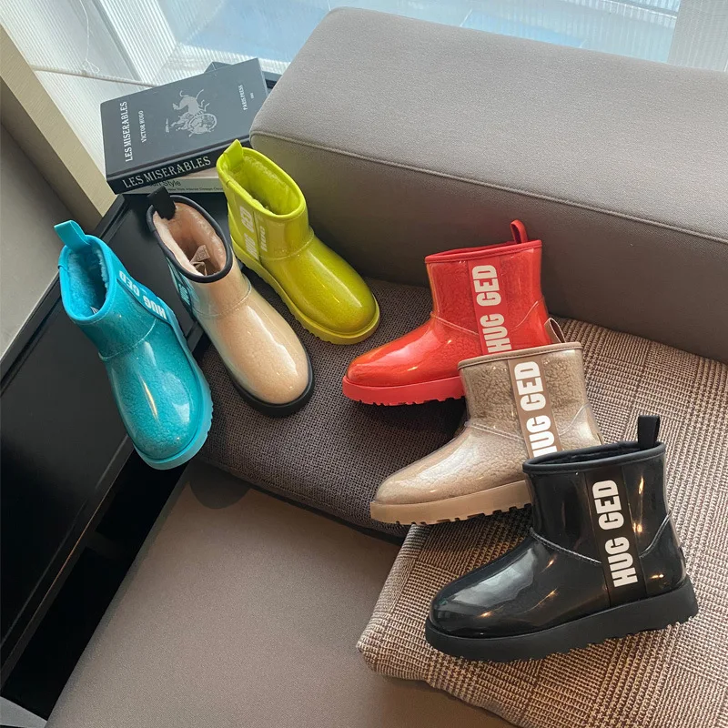2020 Winter Snow Women Boots Plush Warm Shoes Platform Boots Women Transparent Waterproof leather Fur Round Head Shoes Woman