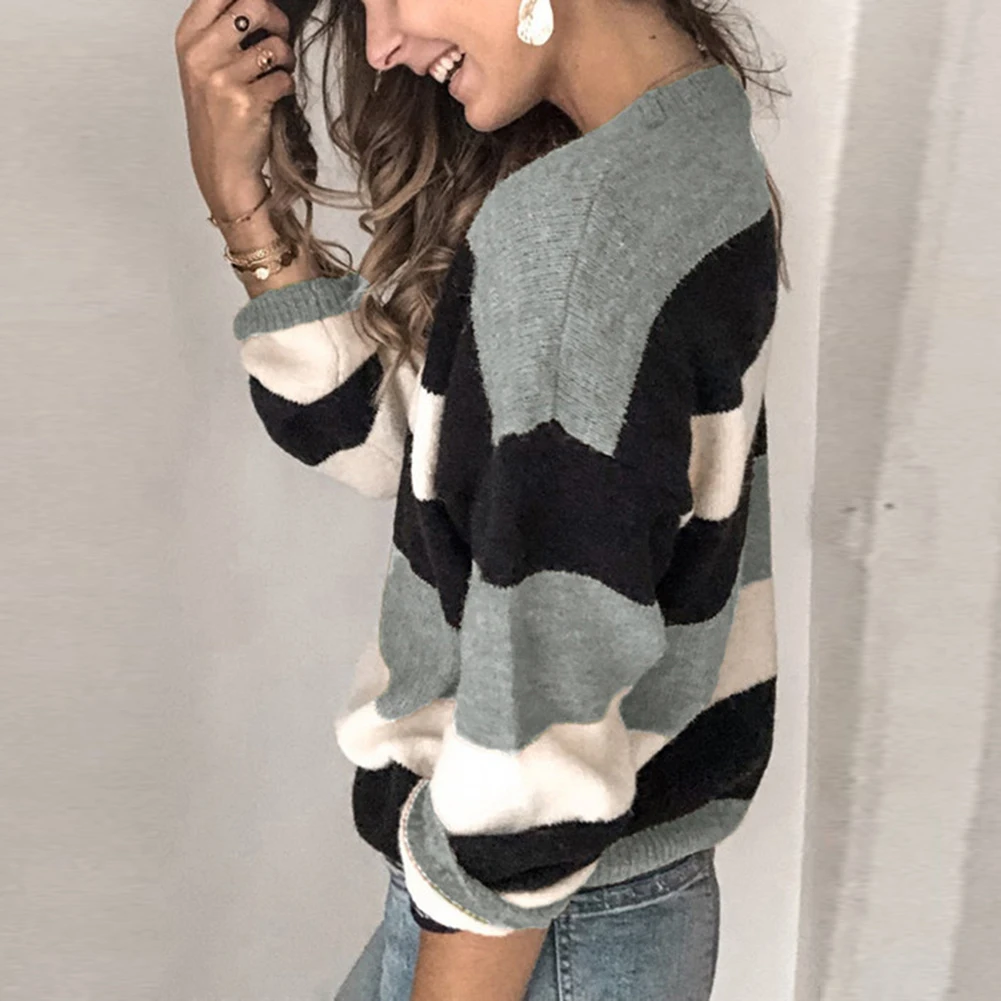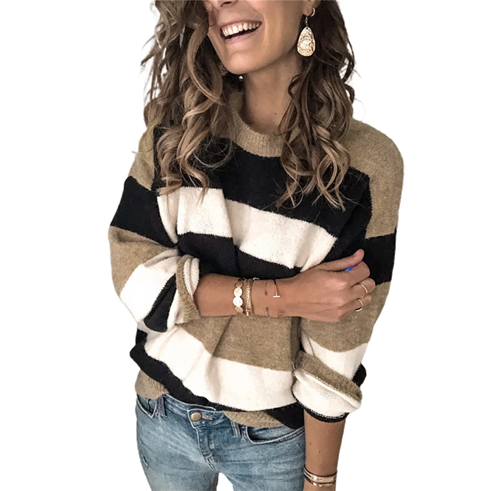 2020 Women Fall Casual Long Sleeve Pullover O Neck Color Block Loose Knitted Sweater Women’s Clothing свитер женский pull femme