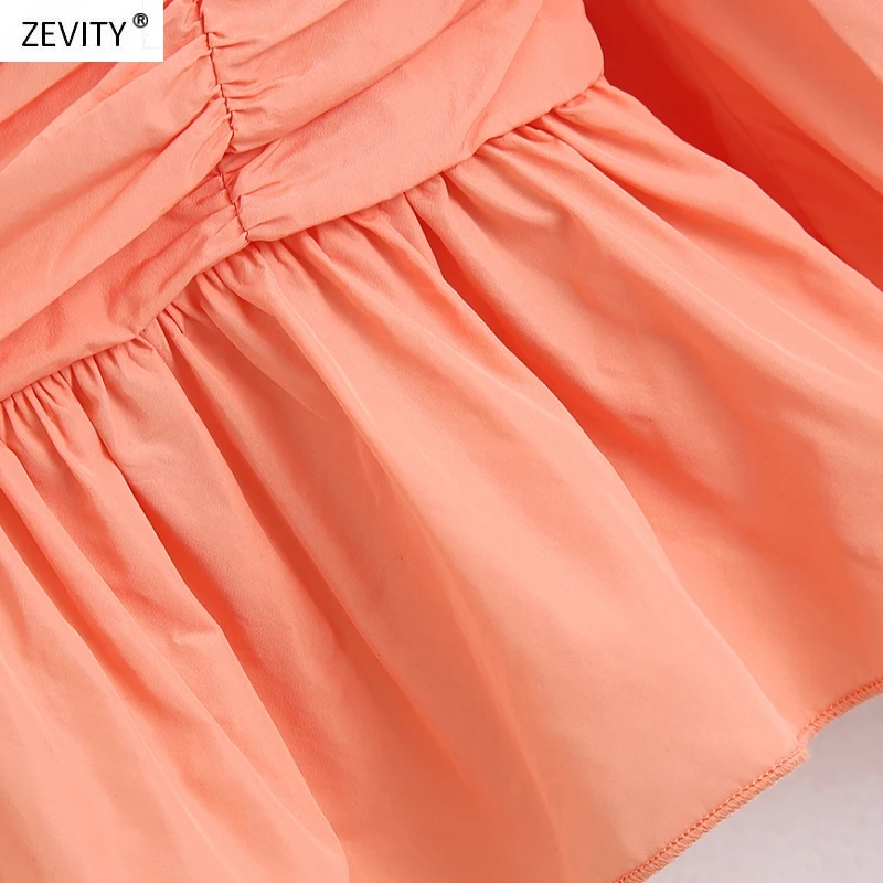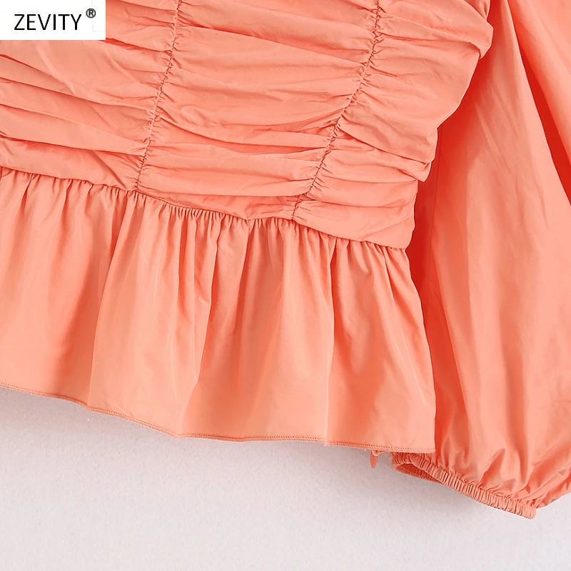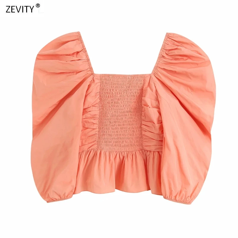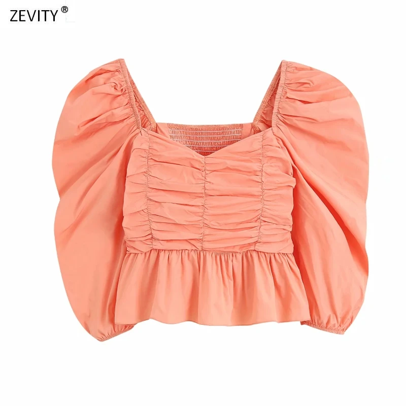 2020 women fashion solid color press pleated smock blouse female puff sleeve ruffles casual slim shirts chic blusas tops LS6745