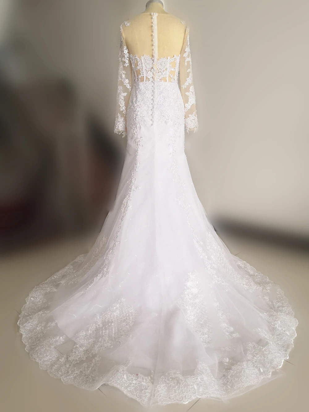 2021 New Illusion Long Sleeve Mermaid Wedding Dresses Pearls Beads Lace Sheer Neck See Through Bridal Gown Custom Made Plus Size