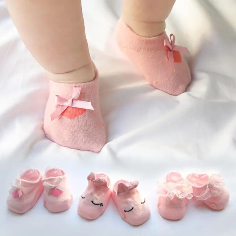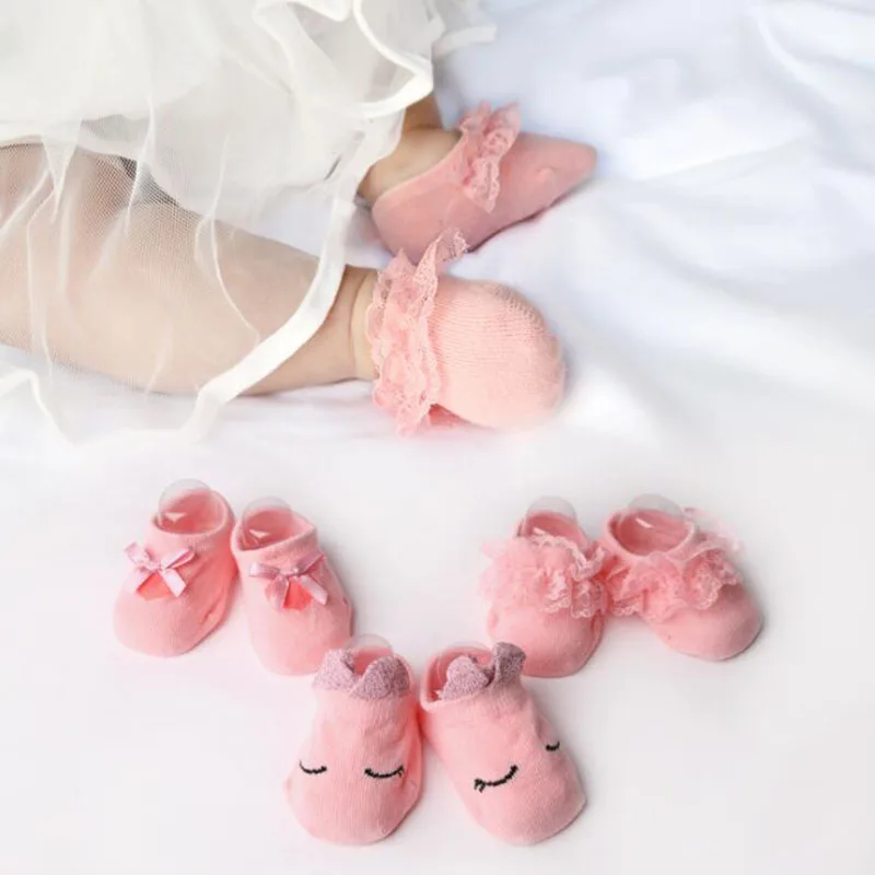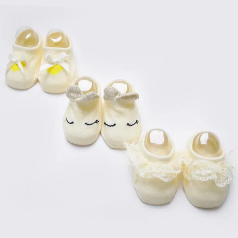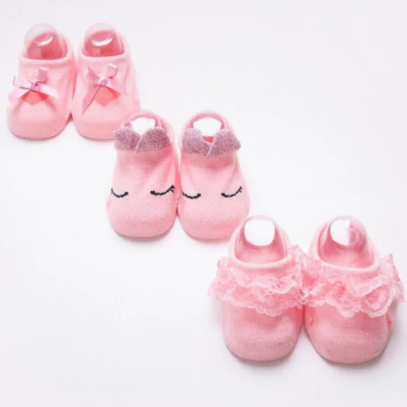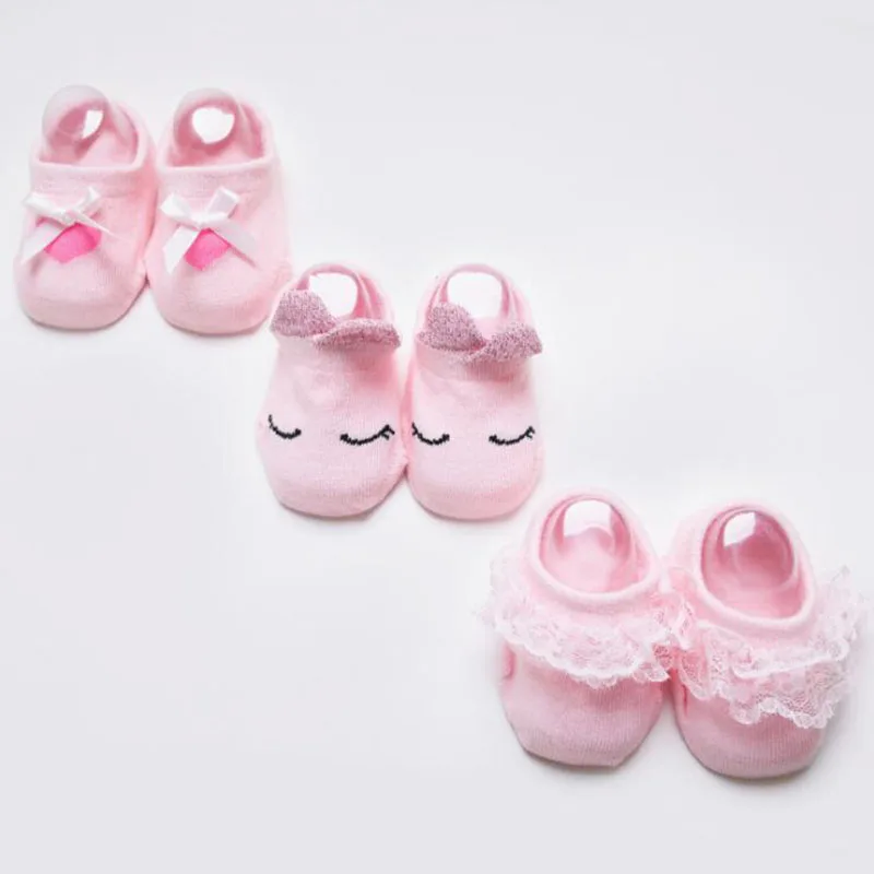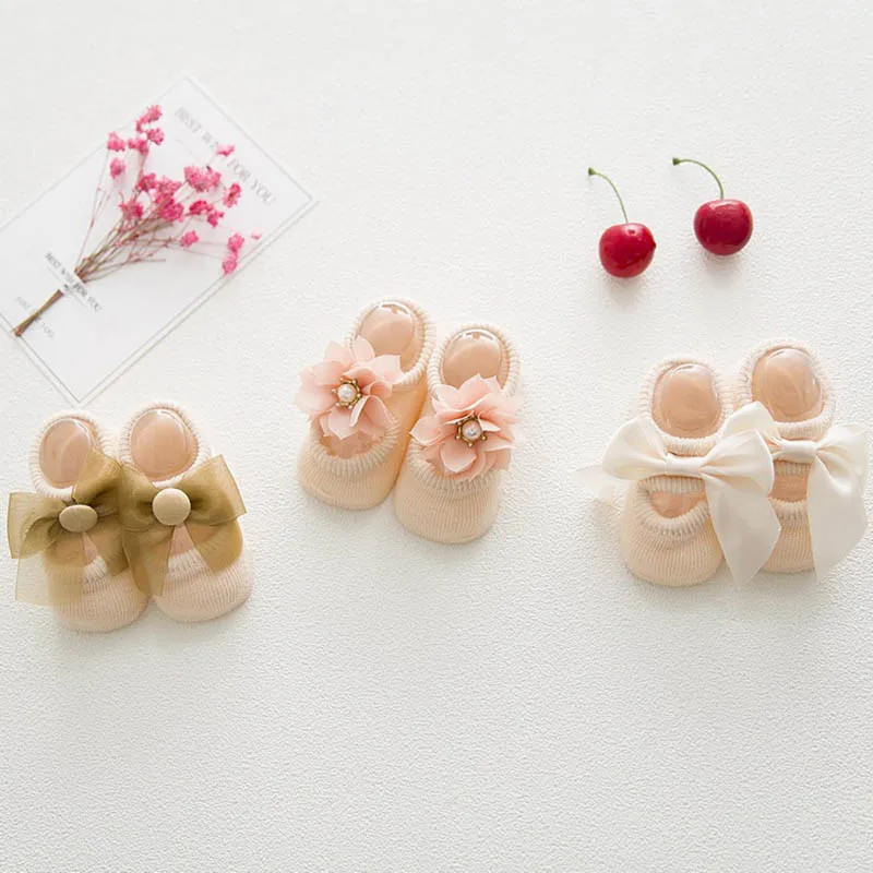 3 Pairs/Lot Lace Flower Newborn Baby Socks Cotton Anti-Slip Kids Floor Socks Bow toddler Girl Socks Spring Girls Gift sokken