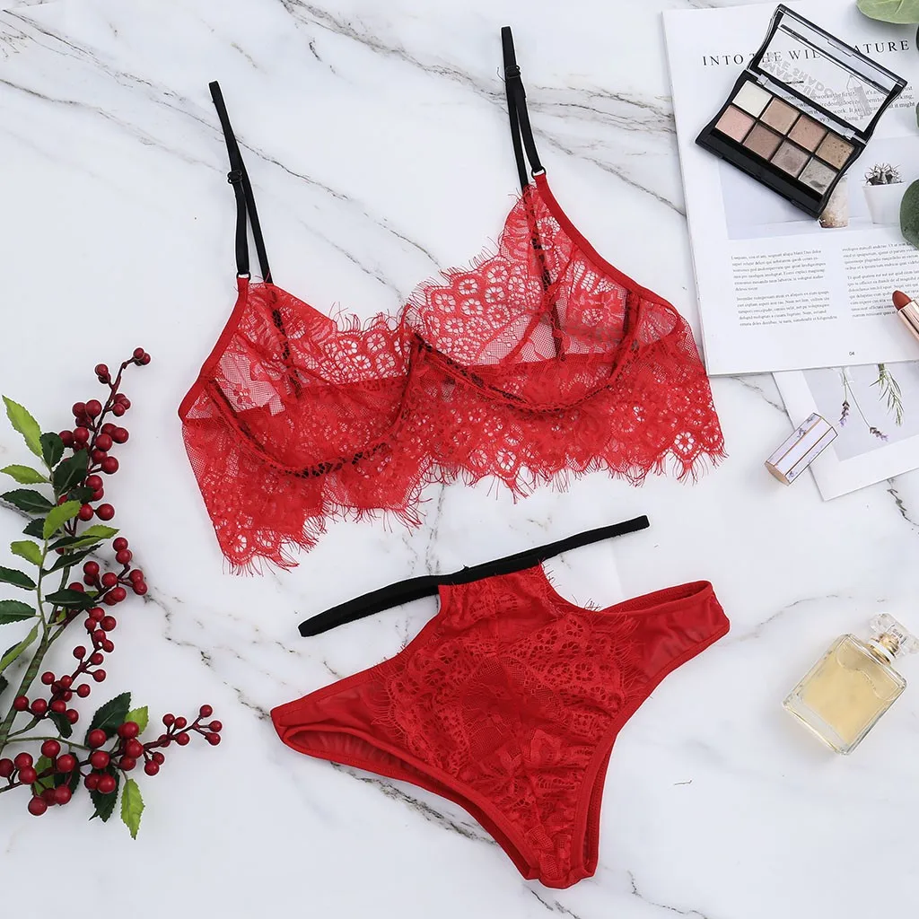 3 Styles Fashion Women Bra Set Polyester Lace Lingerie Straps Sissy Panty Bandage Set Sexy Light and Breathable Underwear Sets