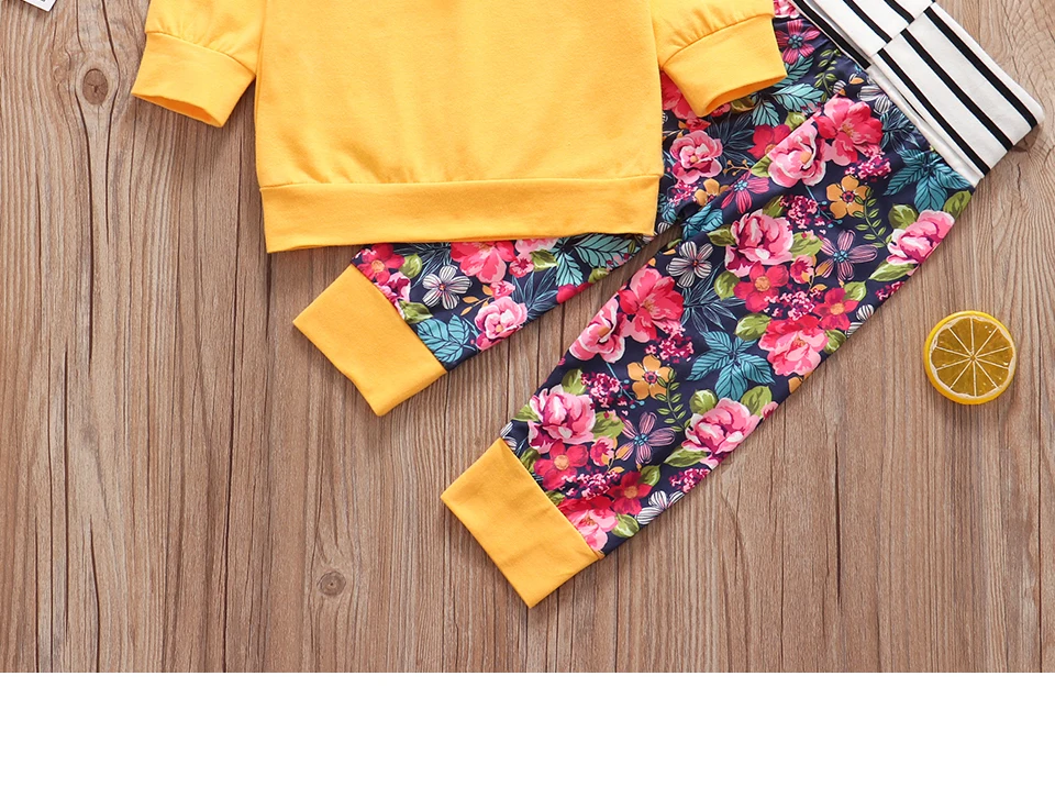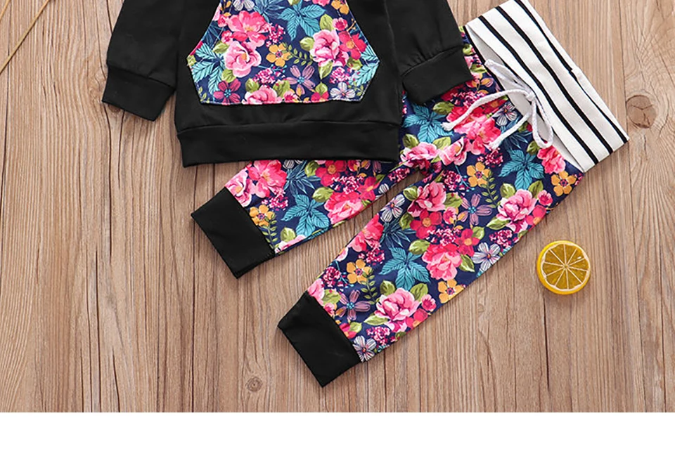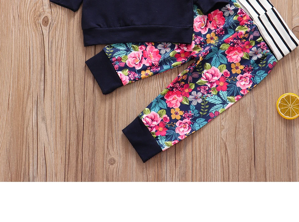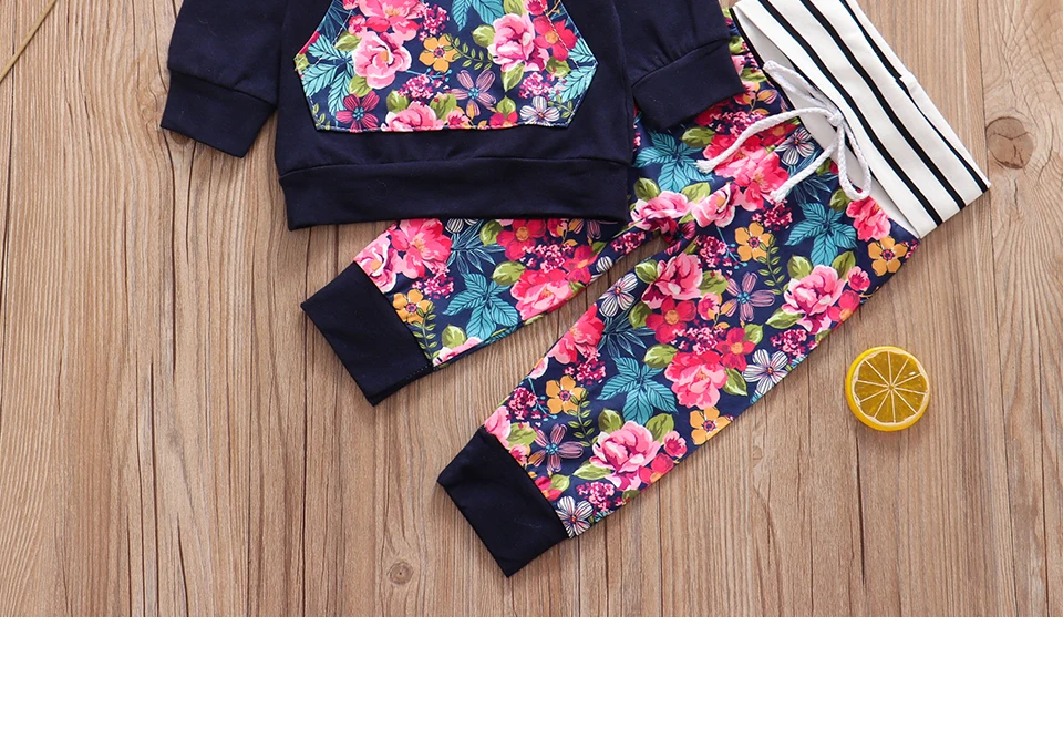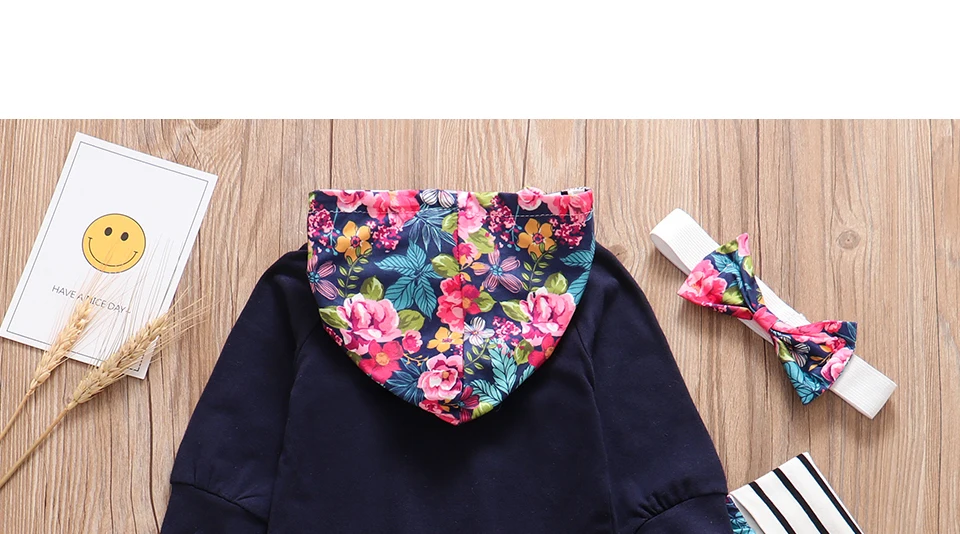 3Pcs New Autumn Baby Girl Clothes Set Hoodie+Pants+Headband Outfits Floral Print Newborn Infant Clothes Baby Girl Clothing Sets