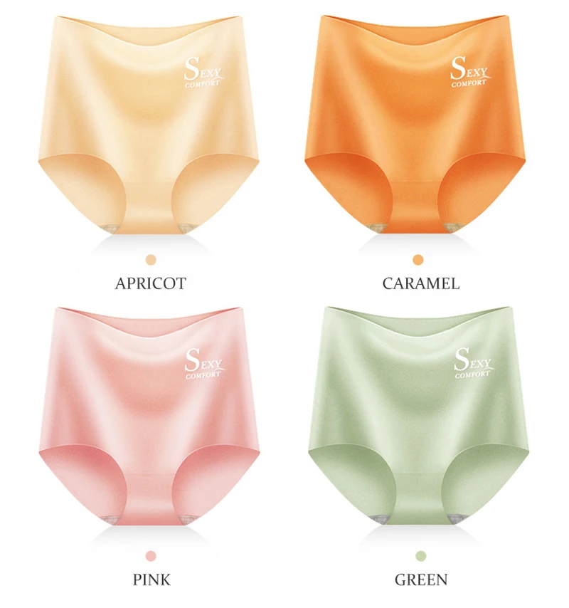 4pcs/lot Sexy Women Panties Ice Silk Briefs Seamless Underwear High Waist Pants Comfort Lingerie Female Underpants Thongs
