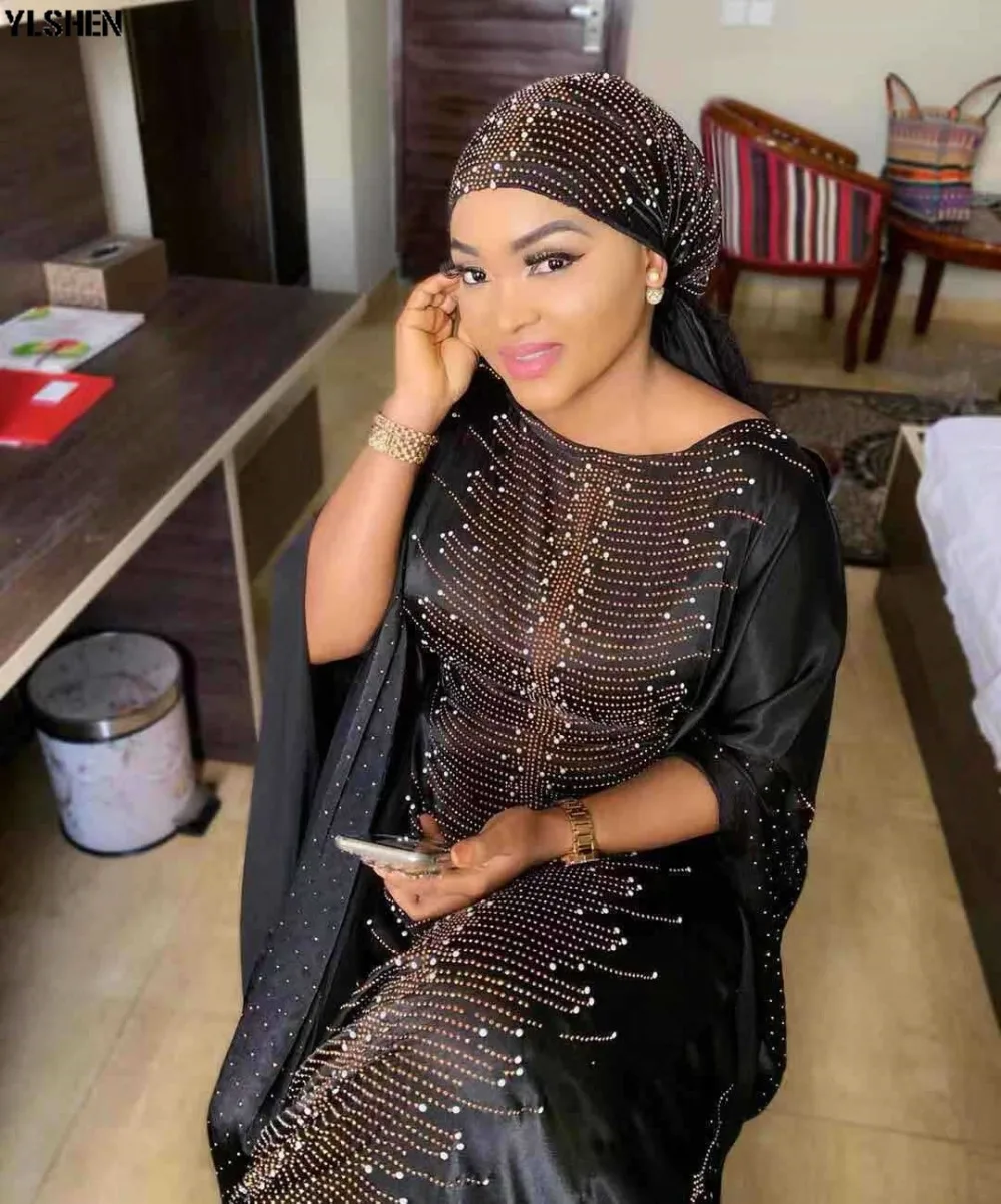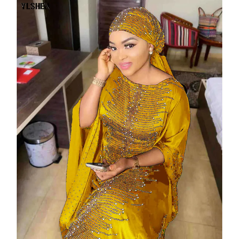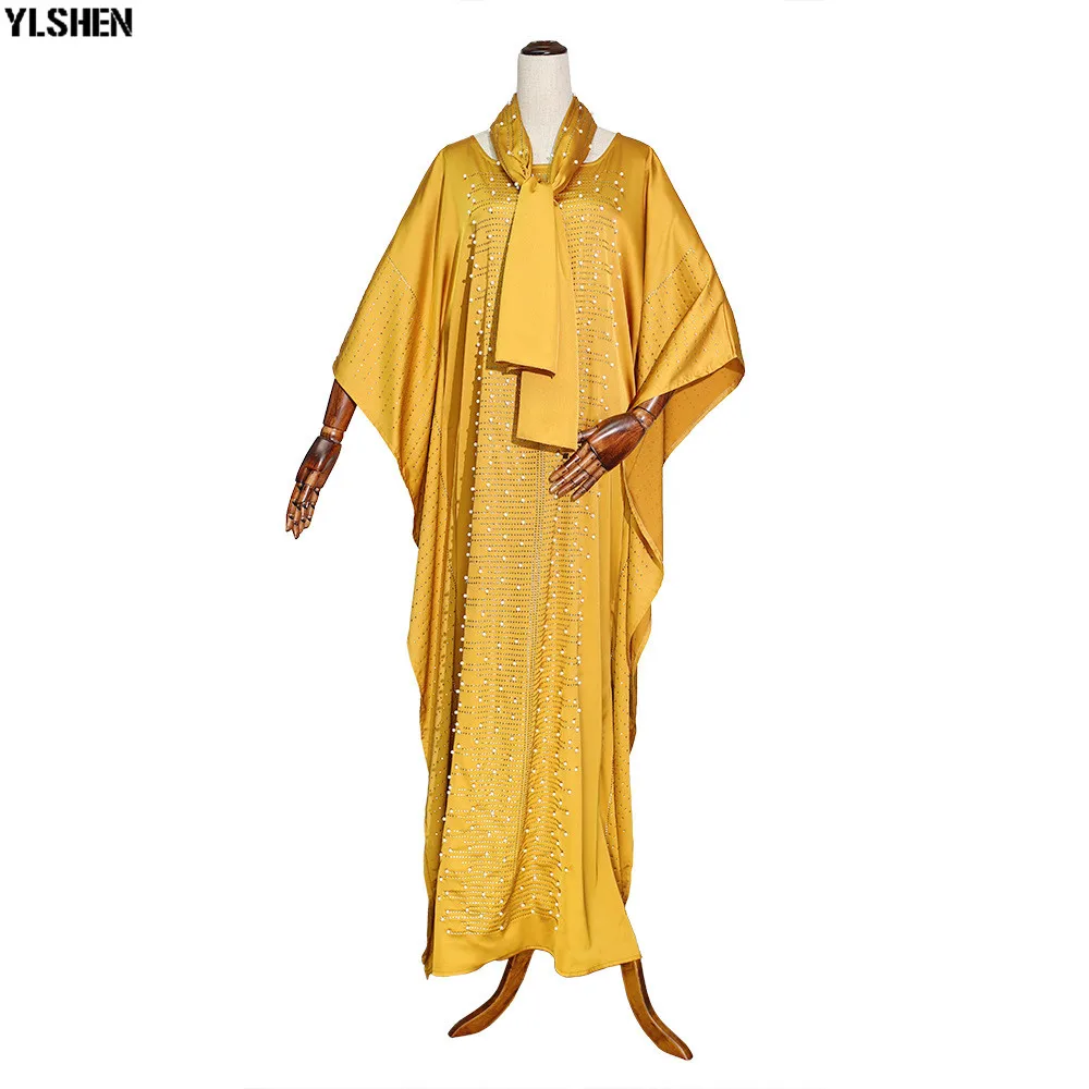 5 Colors African Dresses for Women Plus Size Dashiki Diamond Beads African Clothes Hijab Abaya Dubai Muslim Dress Robe Africa Dress include scarf