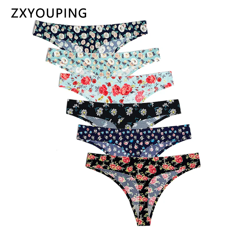 6 Piece Print Seamless Thongs Sexy G-String Panties Women Underwear Breathable Tangas Female Lingerie Briefs XS-L US Size