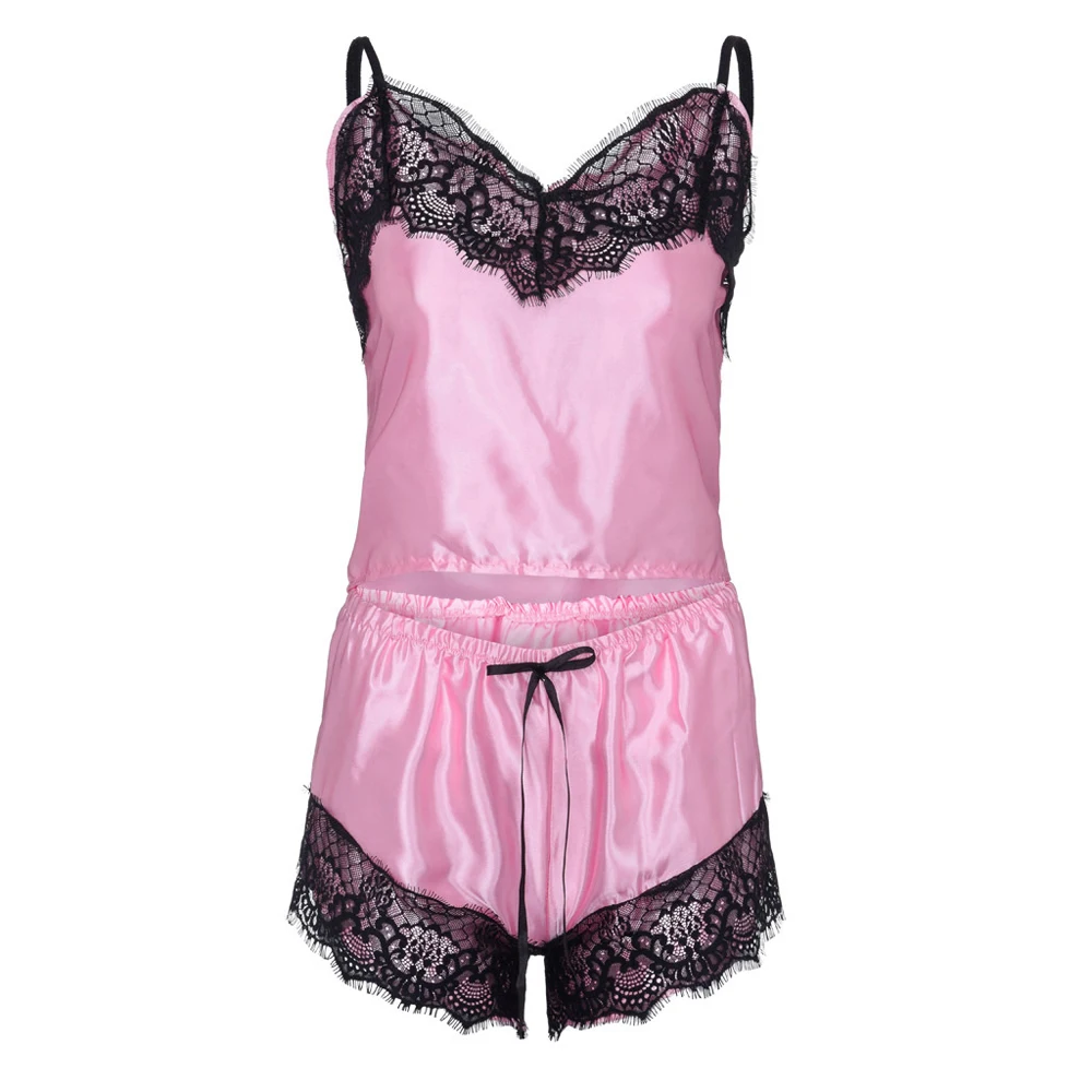 8 Colors Sexy Pajamas Women Sleepwear Sleeveless Nightwear Lace Satin Cami Lingerie Tops Shorts Pajama Sets Plus Size Suit S-5XL