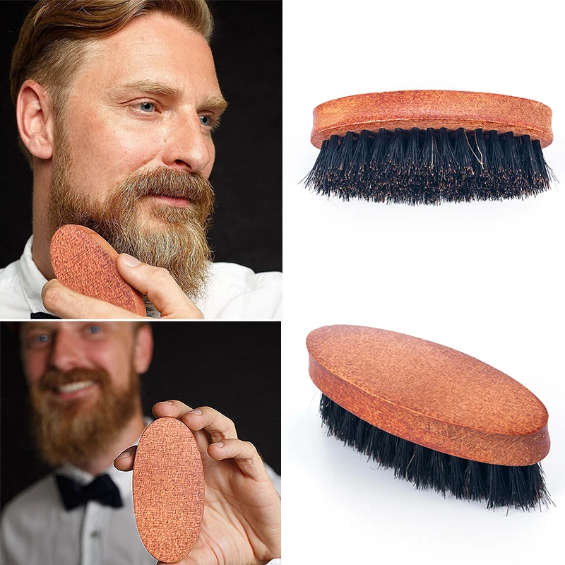 8cm Natural Boar Bristle Beard Brush For Men Bamboo Face Massage That Works Wonders To Comb Beards and Mustache Drop shipping