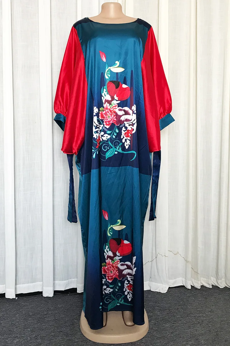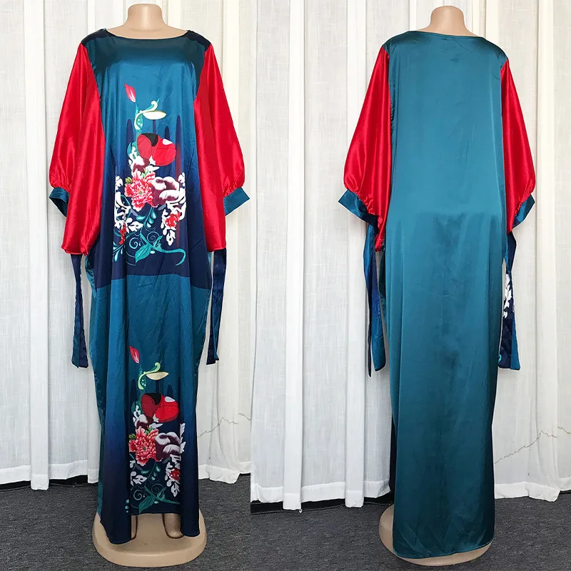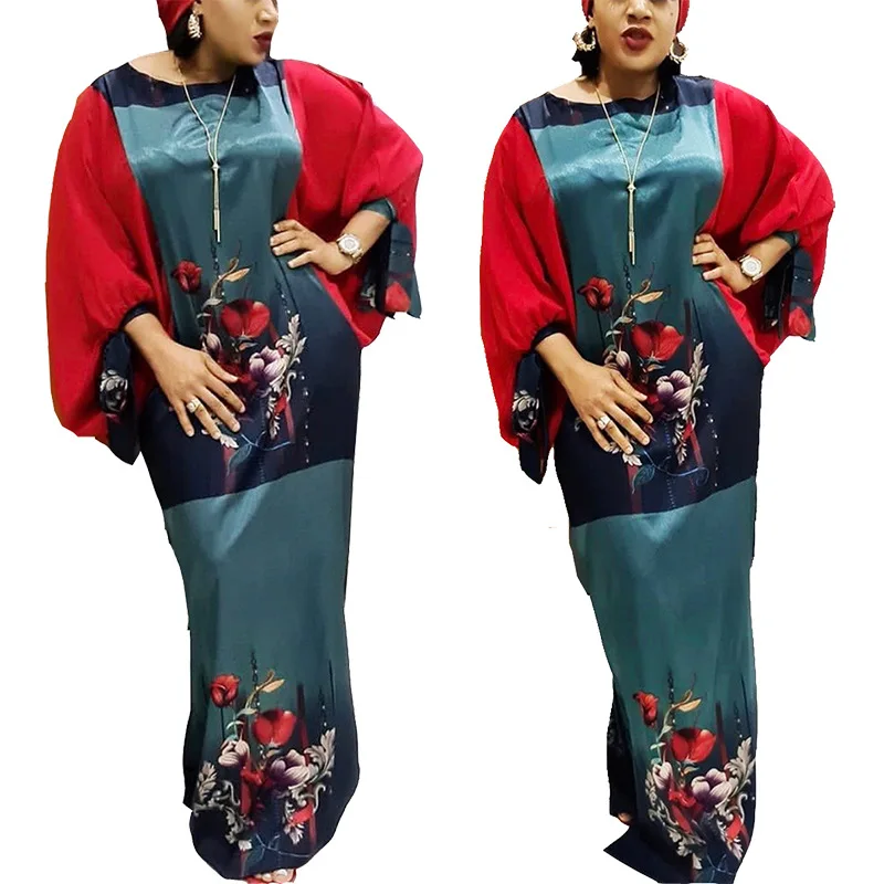 African Dresses For Women Dashiki Flower Pink African Clothes Bazin Broder Riche Sexy Slim Ruffle Sleeve Robe Evening Long Dress