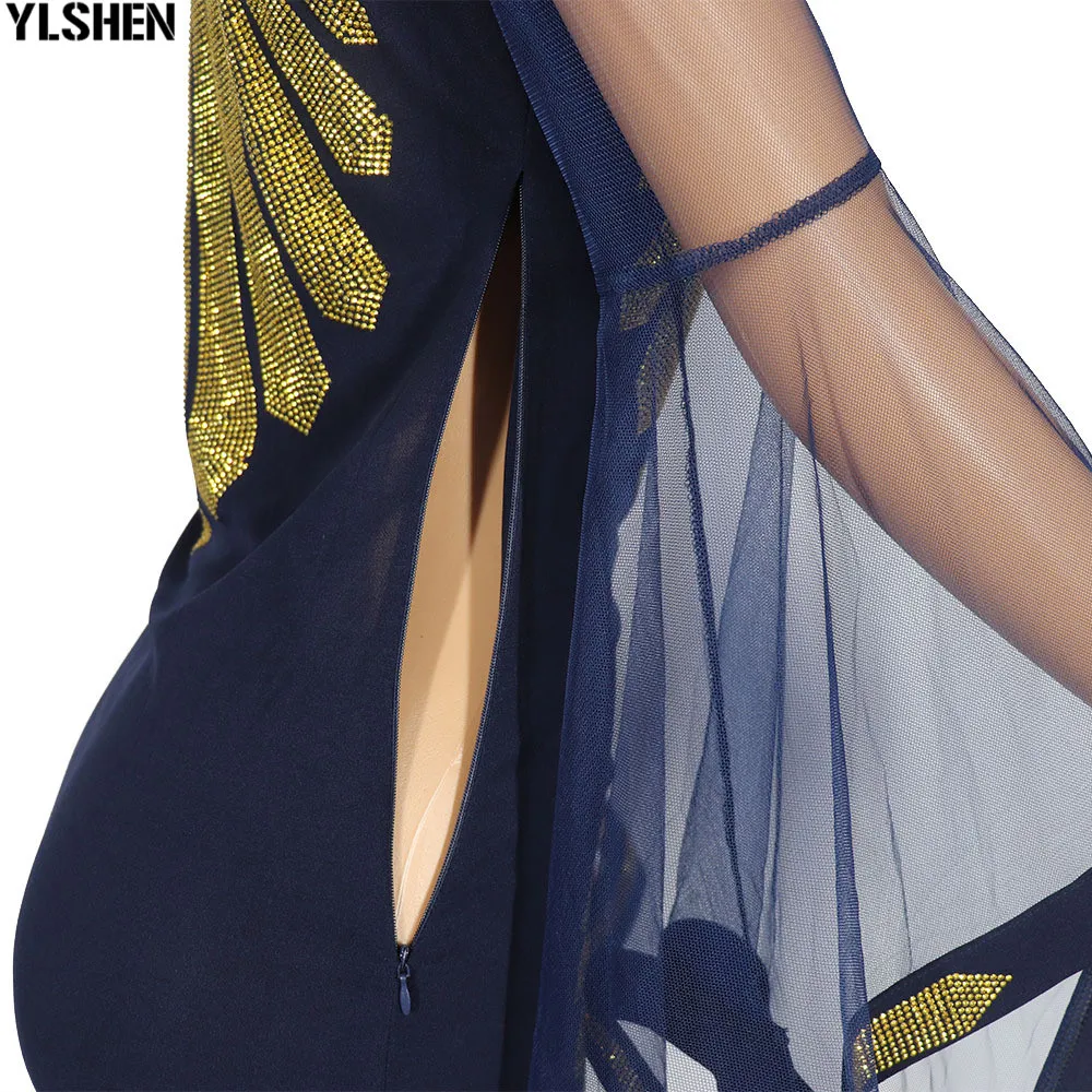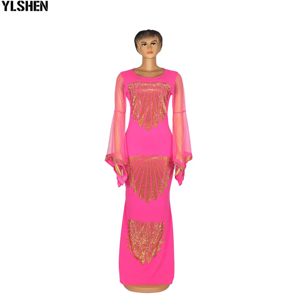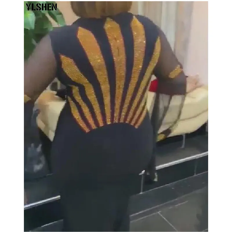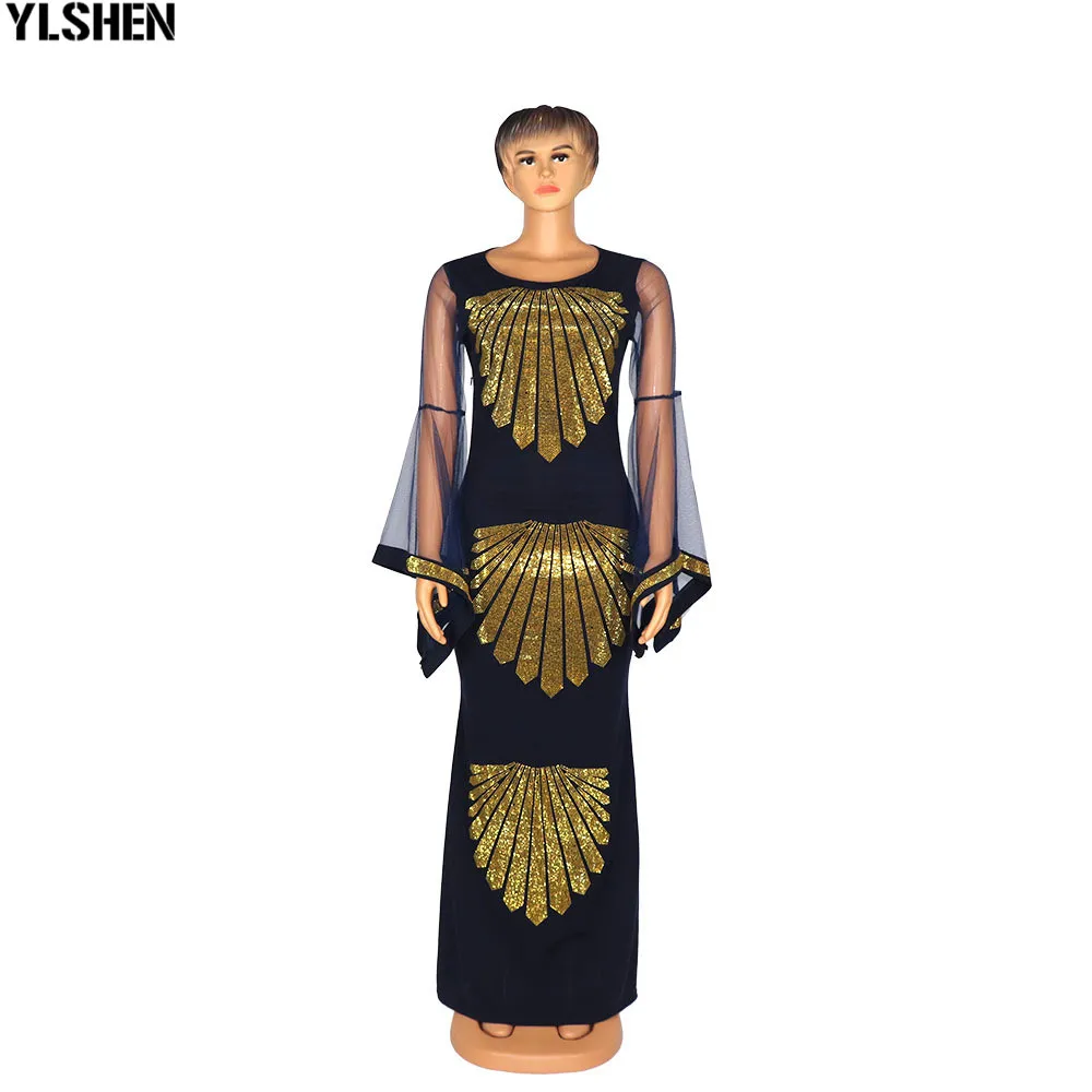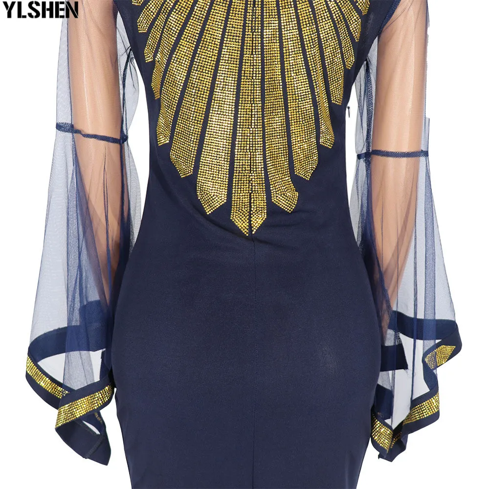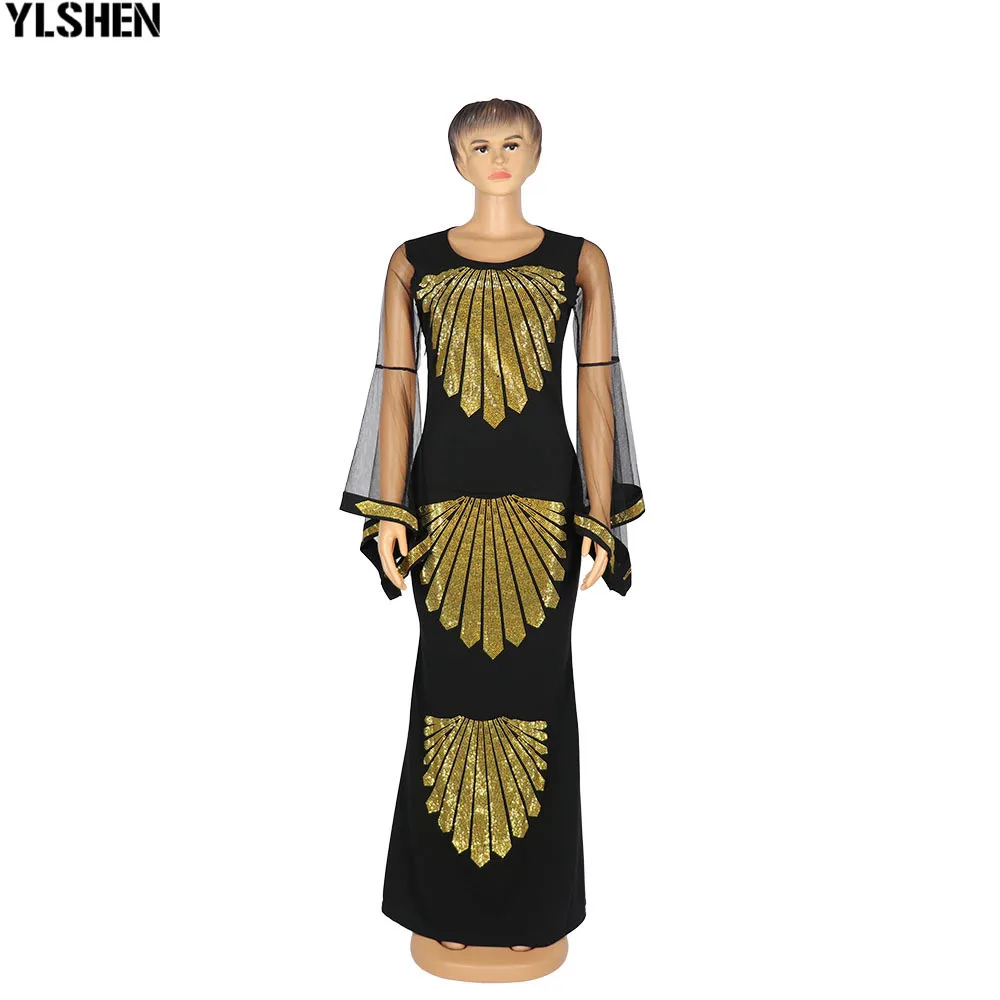African Dresses For Women Dashiki Mesh Ruffle Sleeve Robe African Dress Africa Clothes Super Elastic Diamonds Party Maxi Dress