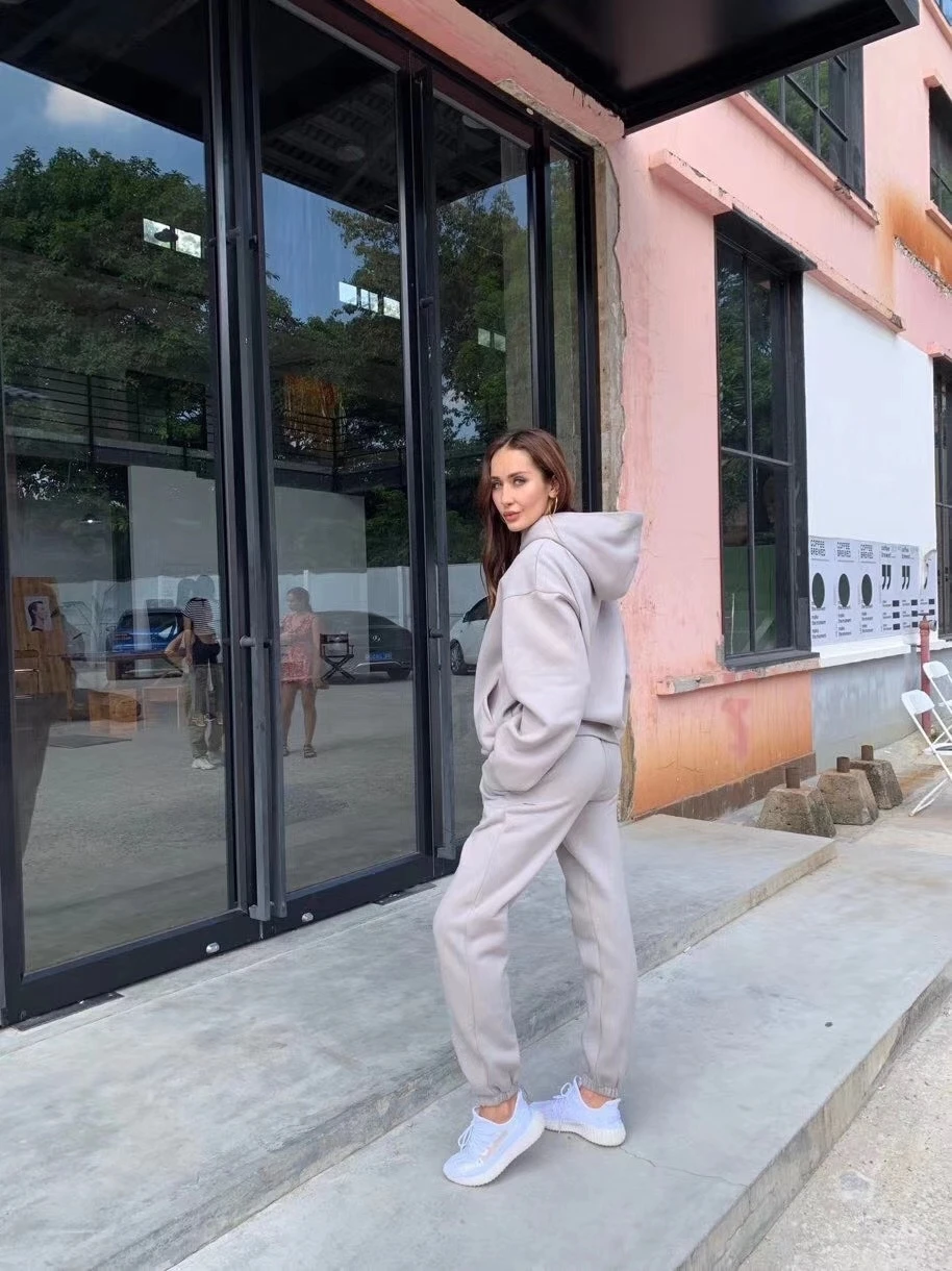 Australian designer, women’s sports suit, winter 2020 new warm, Hooded Fleece sports suit