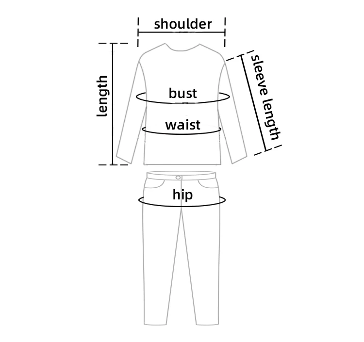 Size: SMLXL S Bust 104cm, waist 64cm, dress length 59cm, hips 110cm, sleeve length 57cm, pants length 100cm M Bust 108cm, waist 68cm, total length 59.5cm, hip 114cm, sleeve length 57.5cm, pants length 101cm L Bust 112cm, waist 72cm, dress length 60cm, hips 118cm, sleeve length 58, trousers 102cm XL:…