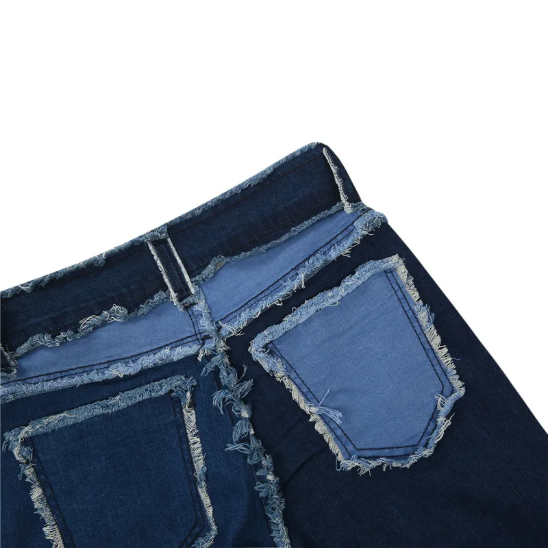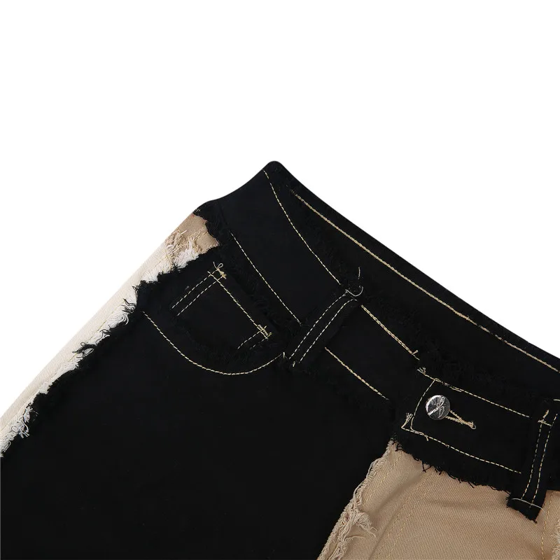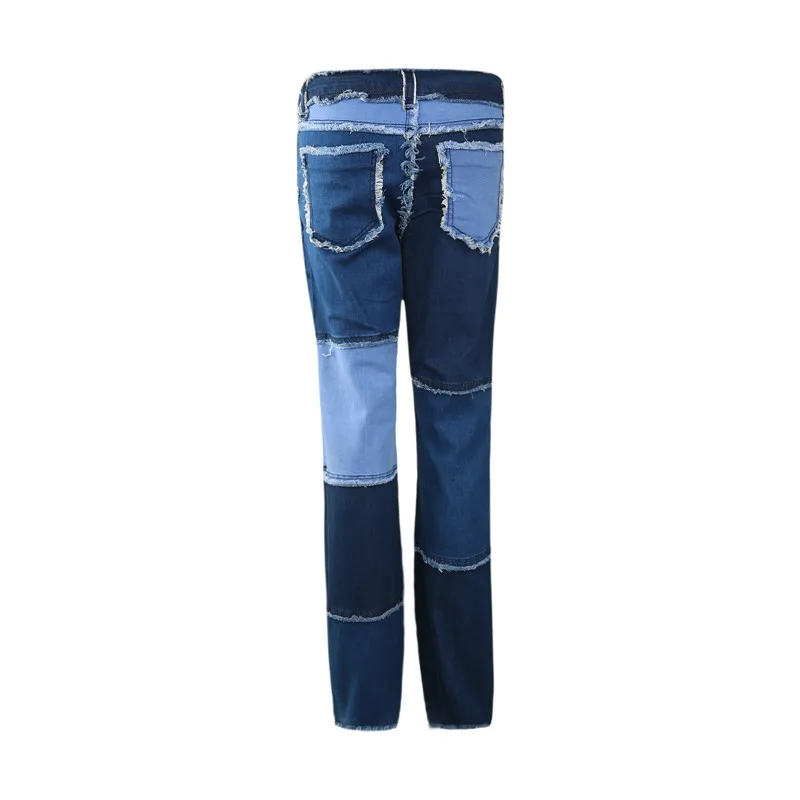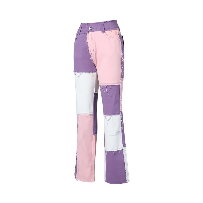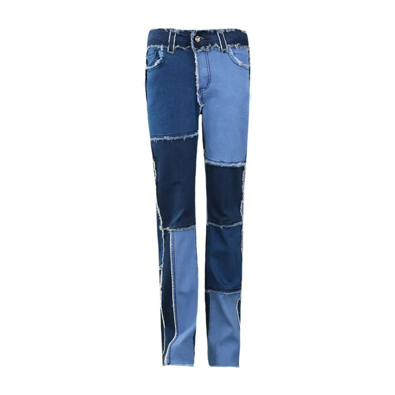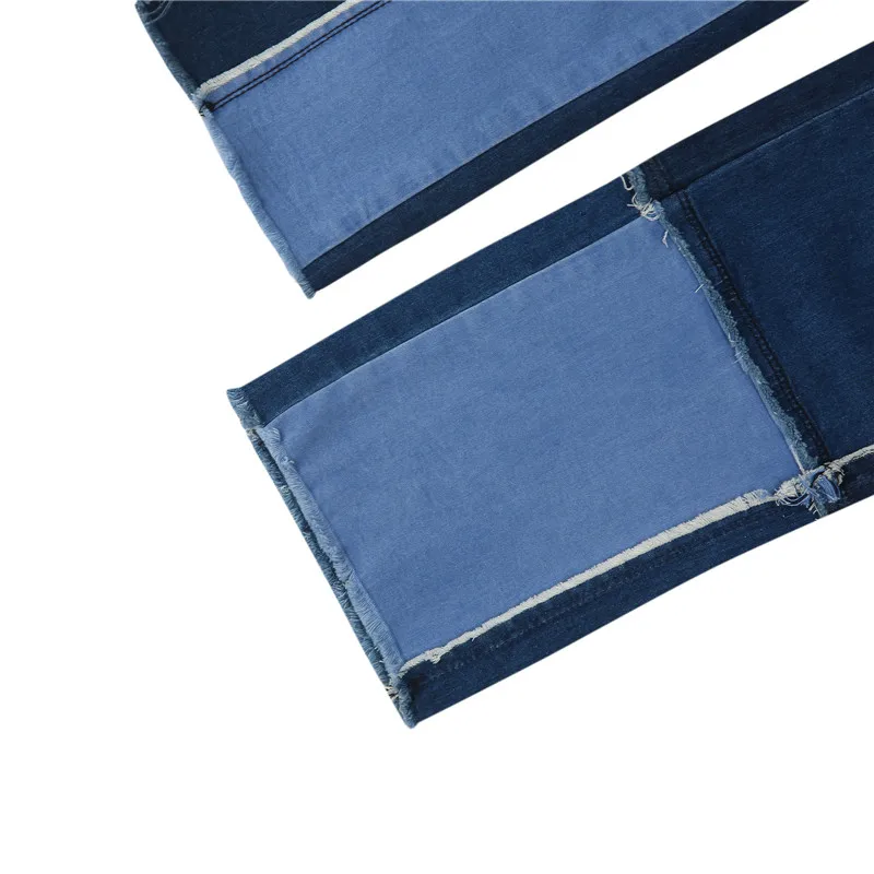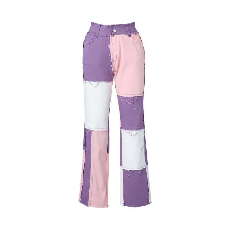 Autumn Patchwork High Waist Straight Denim Pants Women Casual Skinny Ripped Jeans Capris Pocket Long Trousers Ladies Streetwear