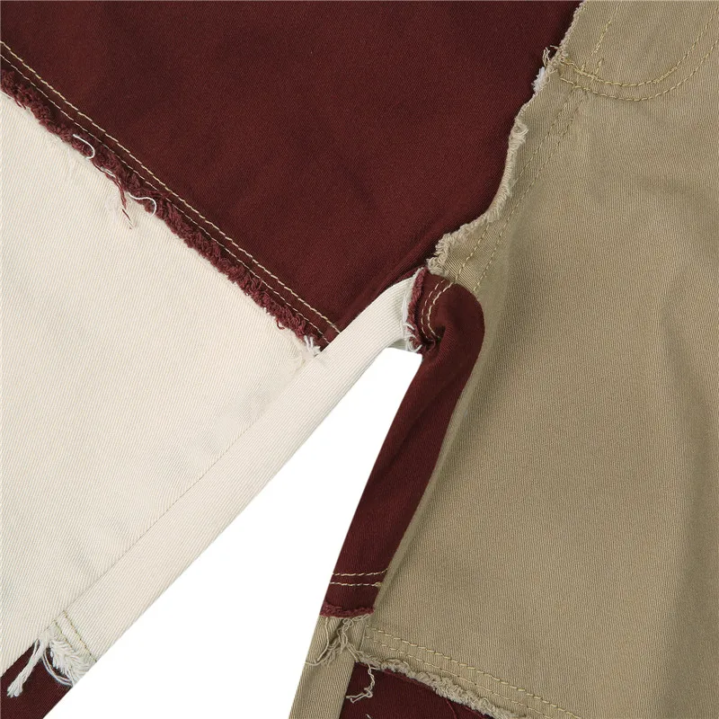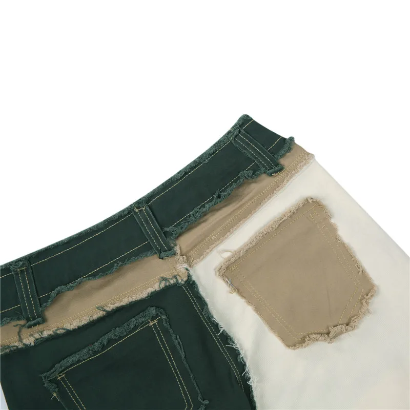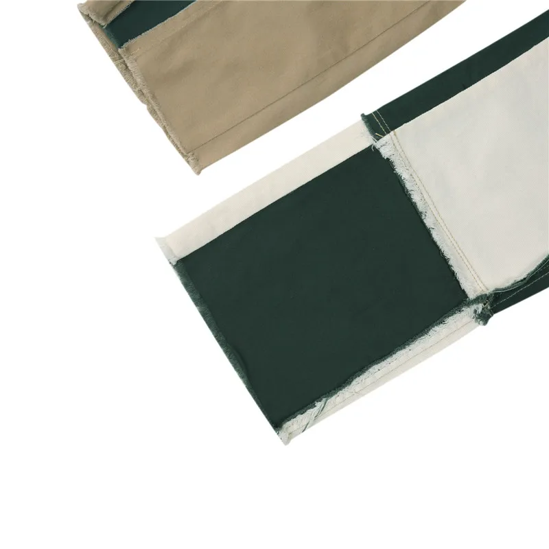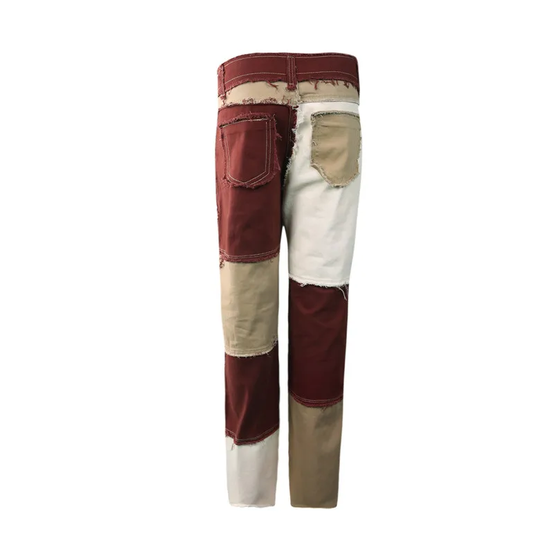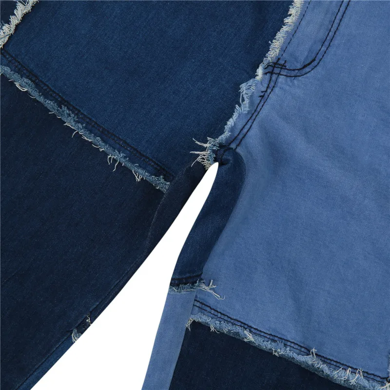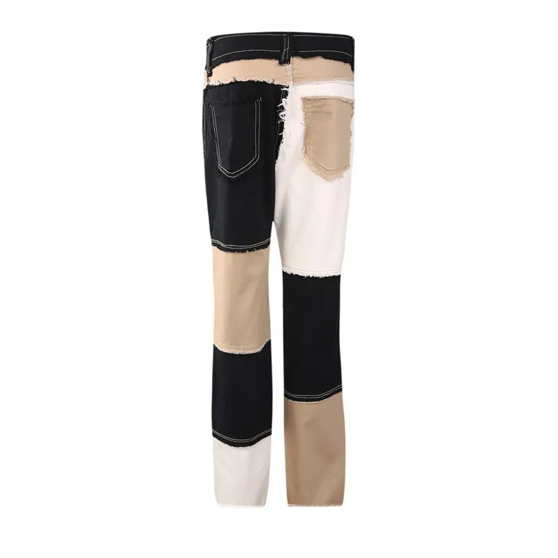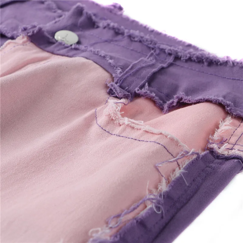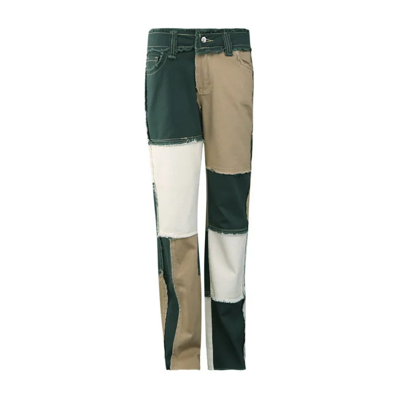 Autumn Patchwork High Waist Straight Denim Pants Women Casual Skinny Ripped Jeans Capris Pocket Long Trousers Ladies Streetwear