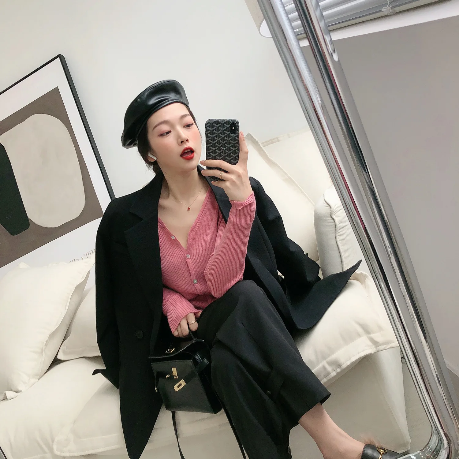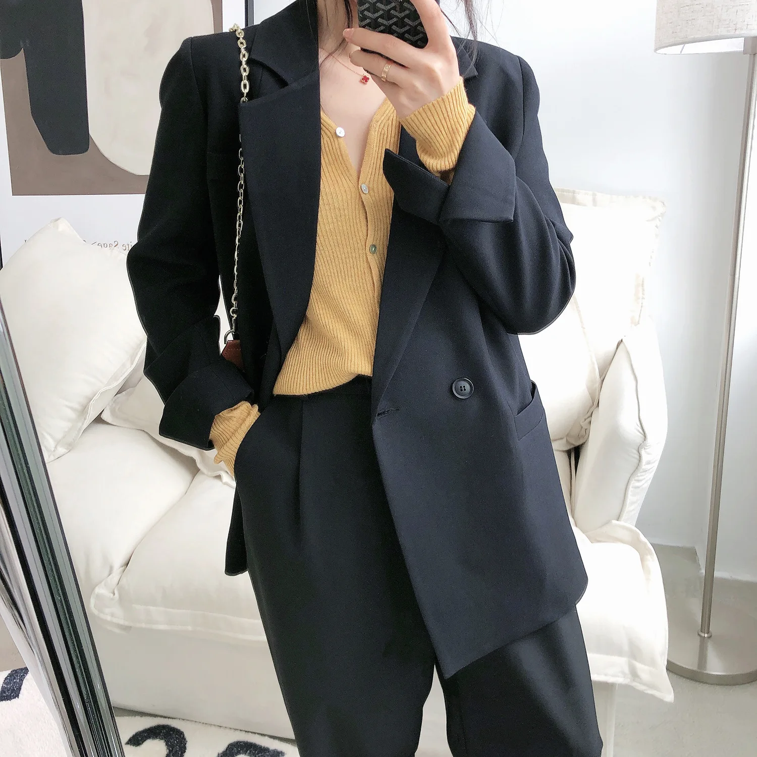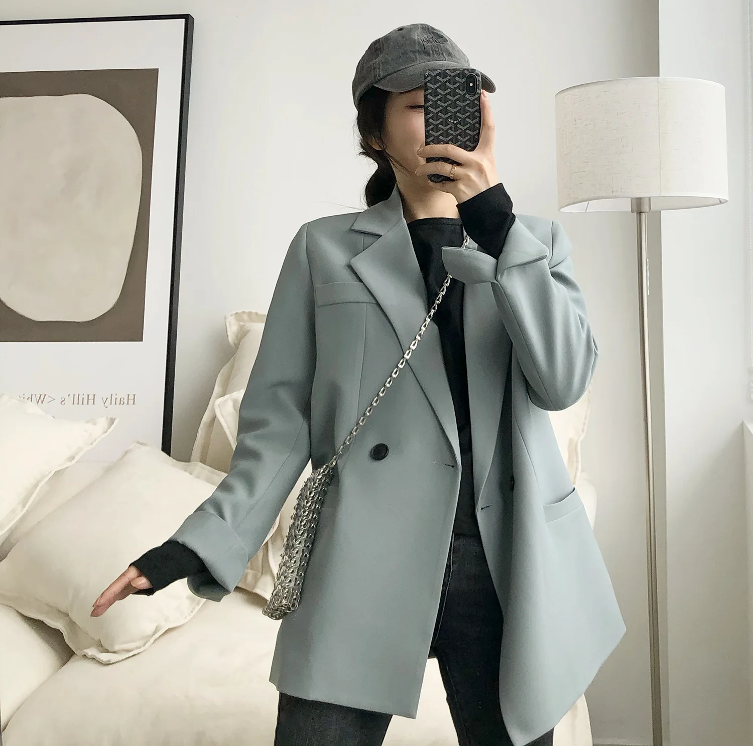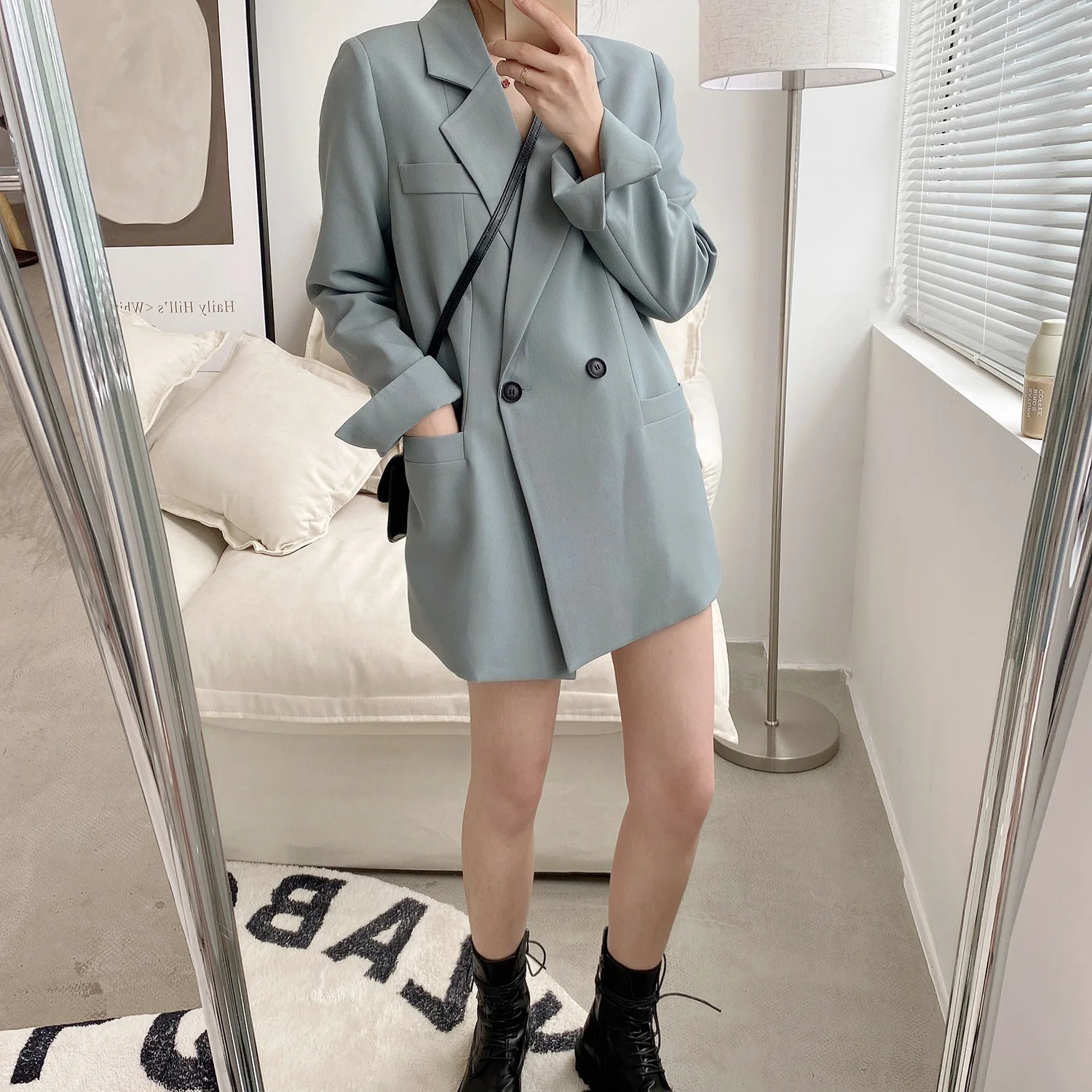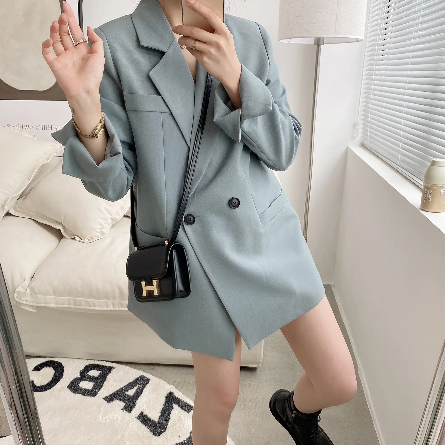 Autumn Solid Color Elegant Blue Blazer Women Jacket Women’s Korean Style Loose V-neck Long Sleeve Cardigan