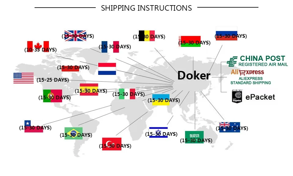 Packages from our warehouse in China will be shipped by ePacket or EMS depending on the weight and size of the product. Packages shipped from our US warehouse are shipped through USPS.