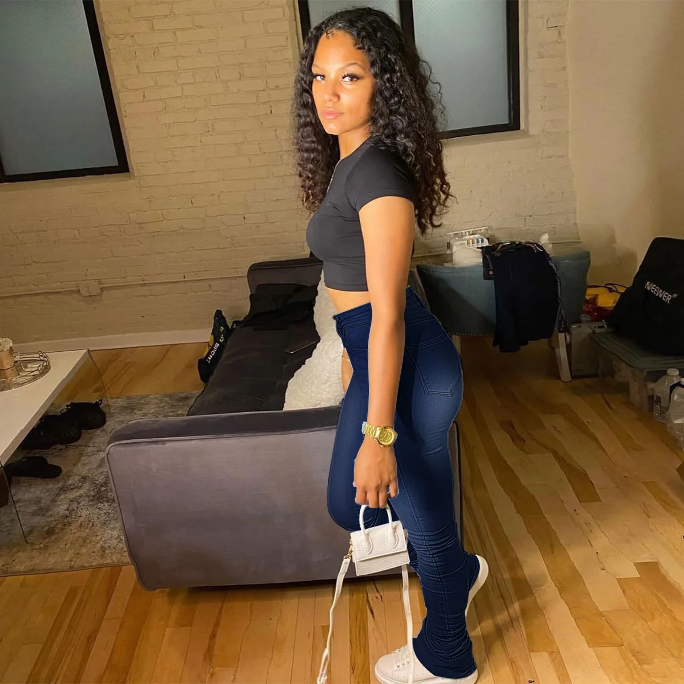 Autumn Women Bell Bottom Jeans Casual Solid Color Mid Waist Skinny Stacked Jeans Women Fashion Slim Denim Pants Vaqueros Mujer
