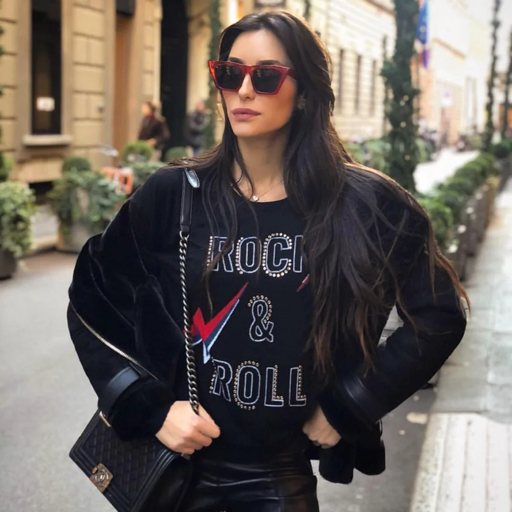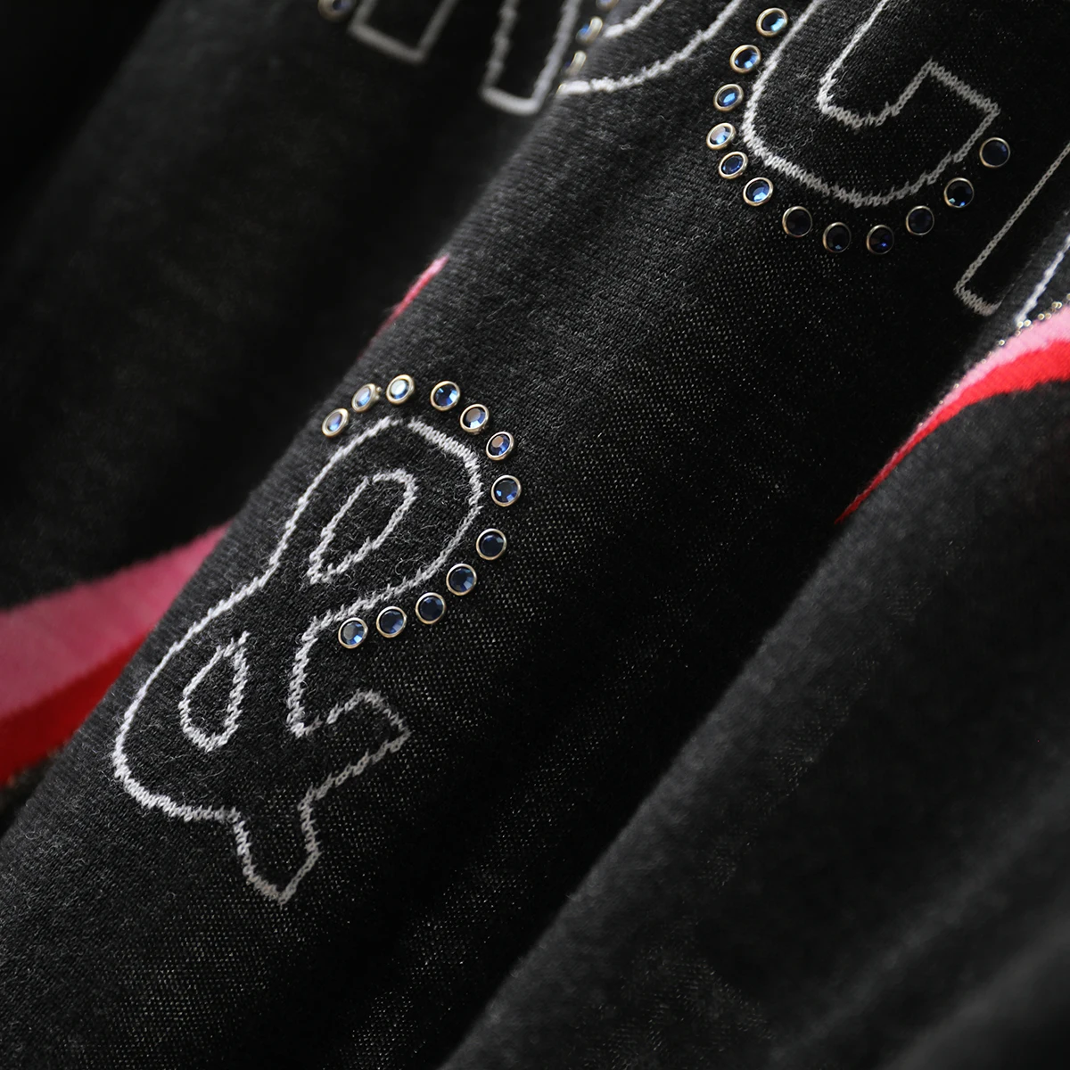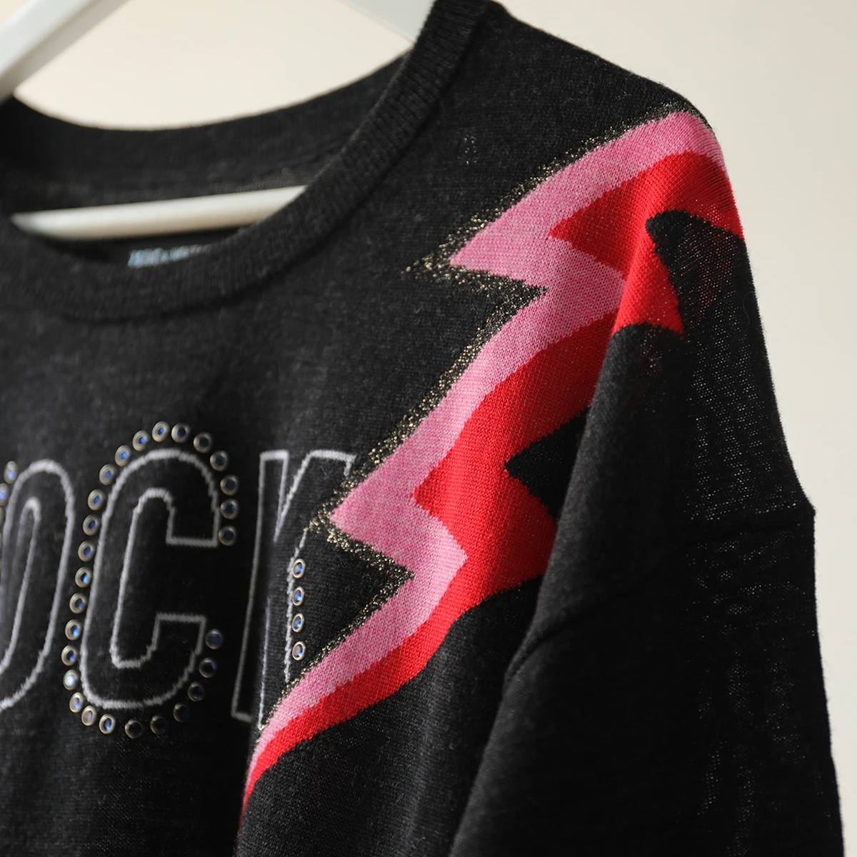 Beading Letter Graphic Sweater Women Autumn Winter Long Sleeve O Neck Black Pullover 2020 Casual Vintage Rock Sweaters Tops