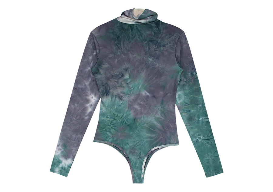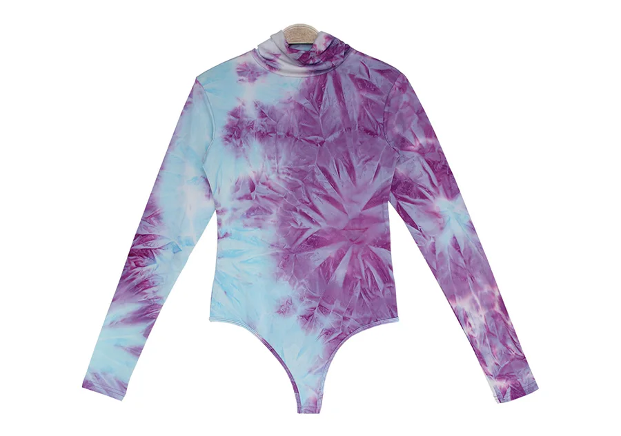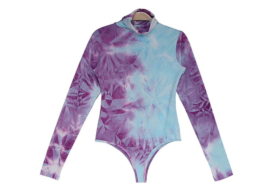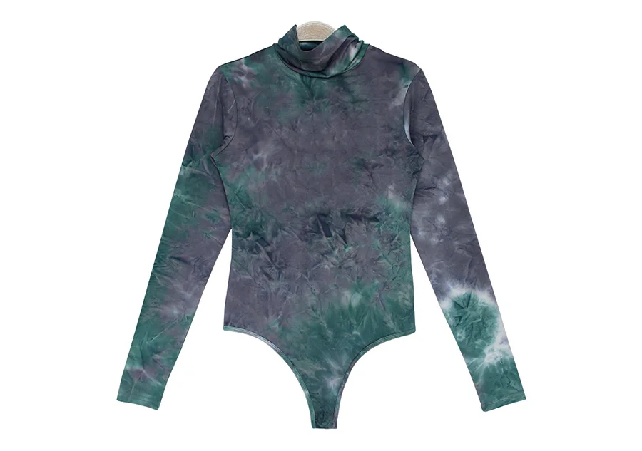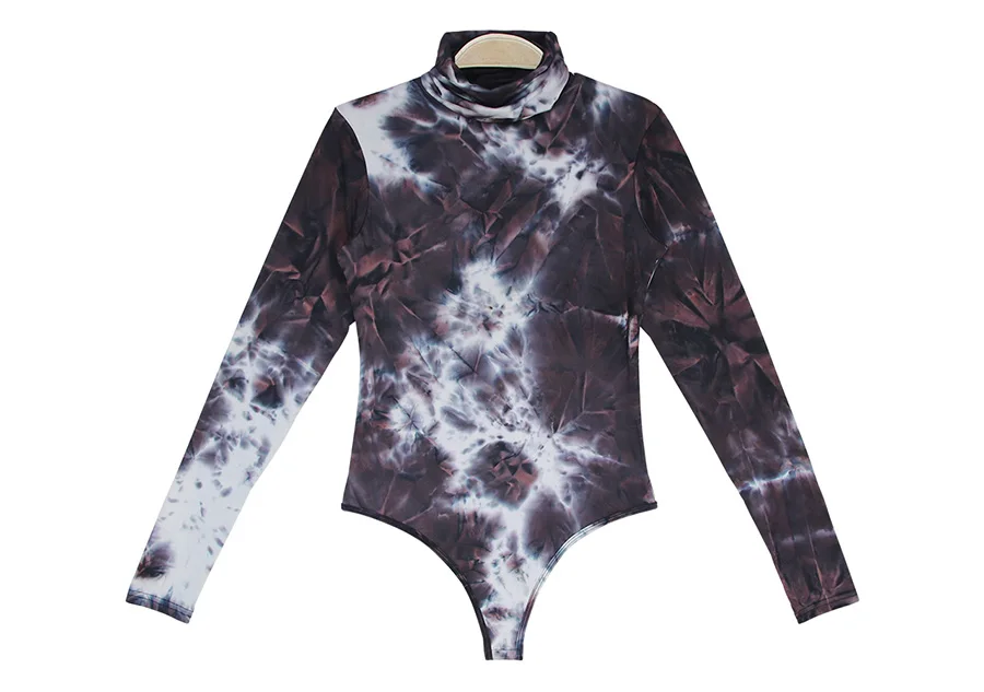 Benuynffy Turtleneck Long Sleeve Tie Dye Bodysuit Women Spring Plus Size Body Top Streetwear Casual Ladies Slim Fit Bodysuits
