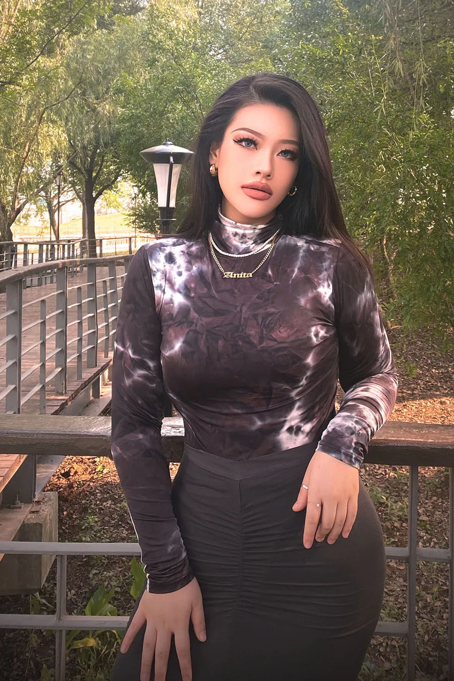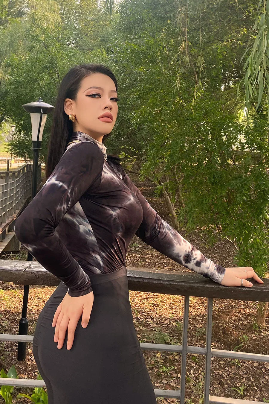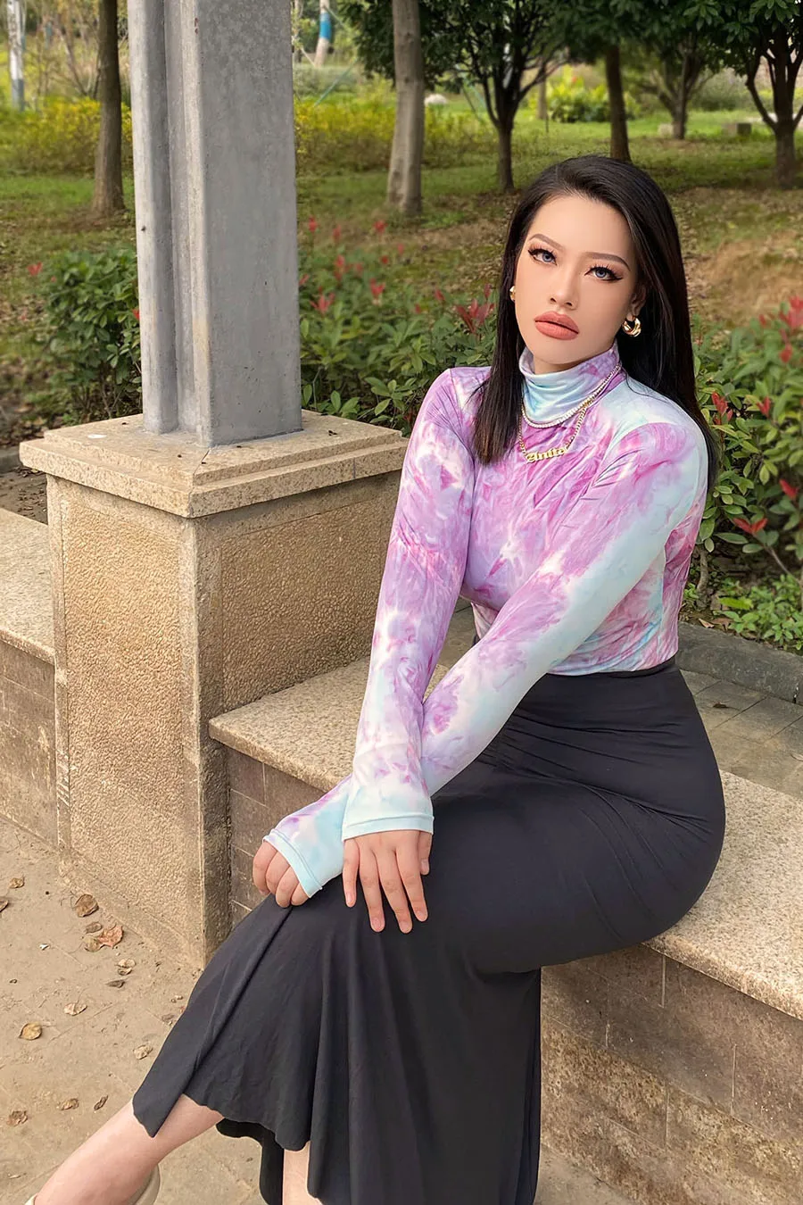 Benuynffy Turtleneck Long Sleeve Tie Dye Bodysuit Women Spring Plus Size Body Top Streetwear Casual Ladies Slim Fit Bodysuits