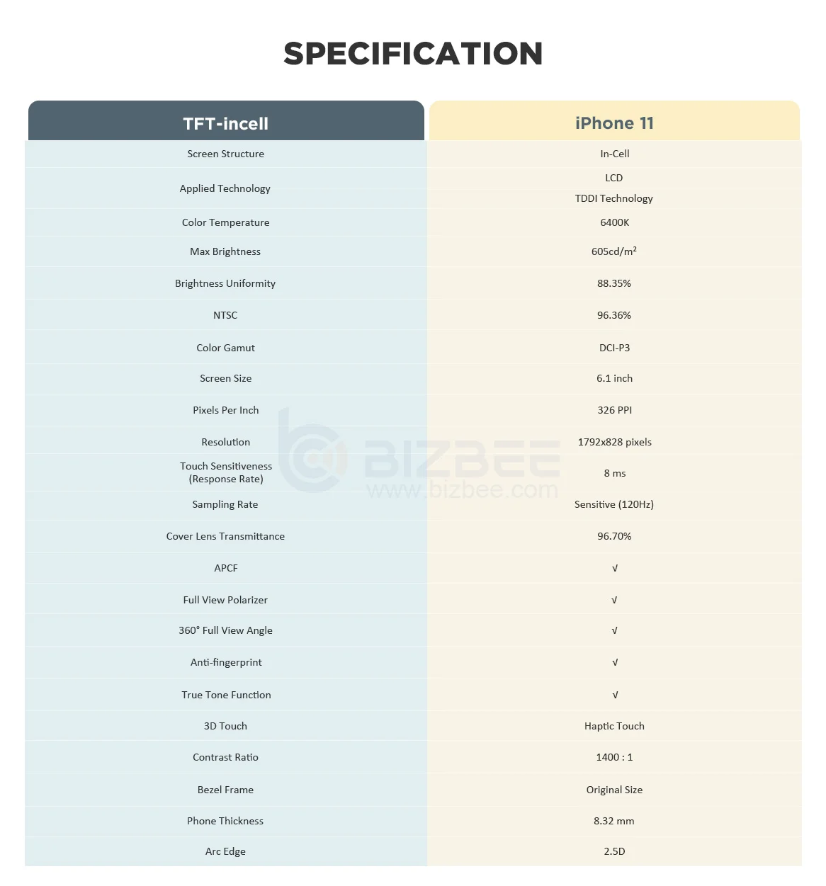 BIZBEE Grade AAA Display LCD for IPhone 11 11Pro 11 Pro Max Screen With 3D Touch Digitizer Assembly Perfect Repair Replacement
