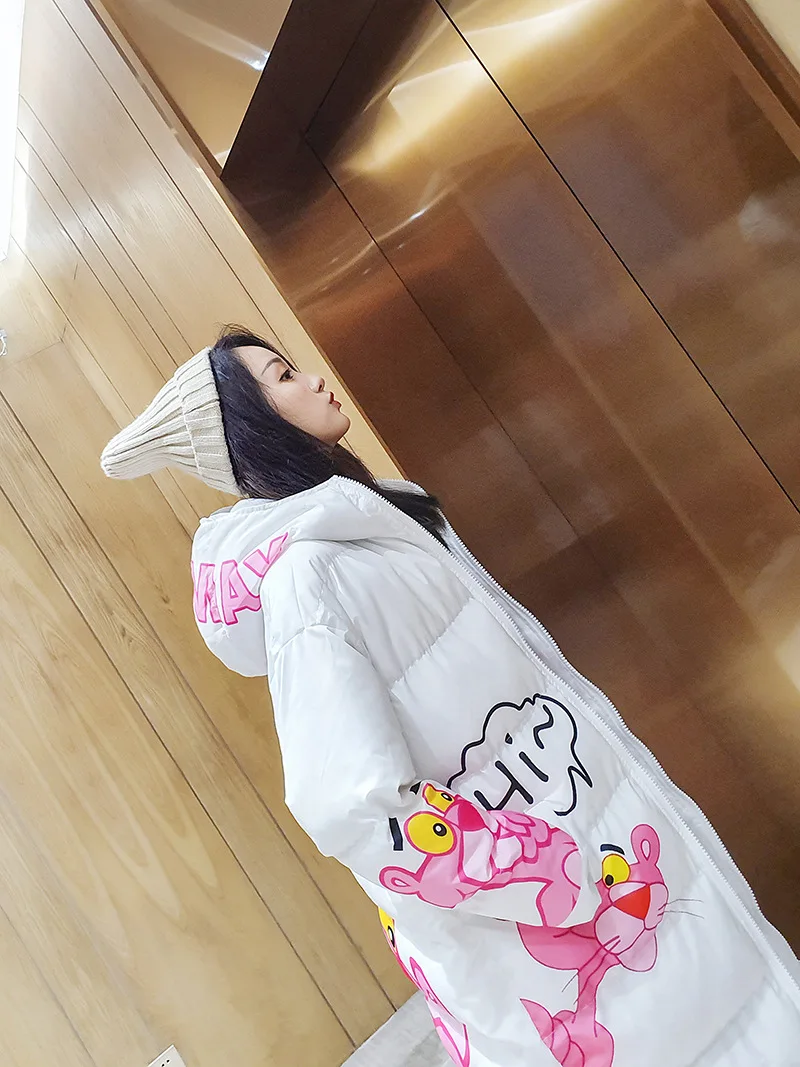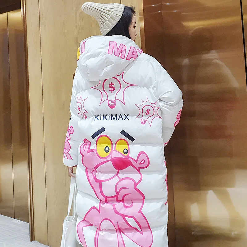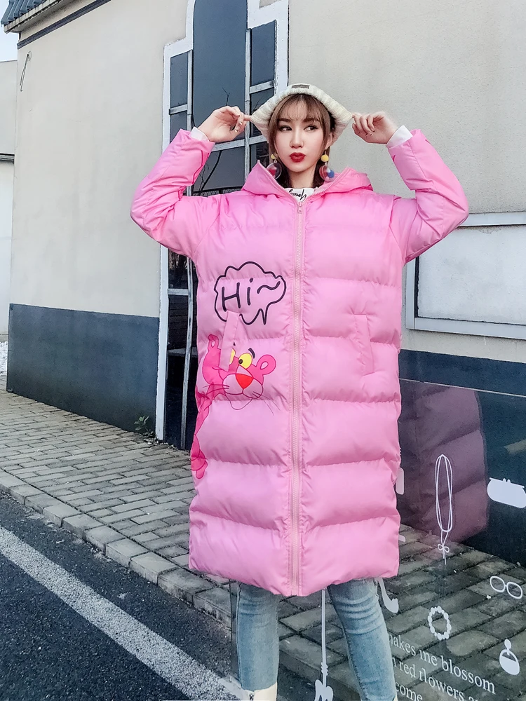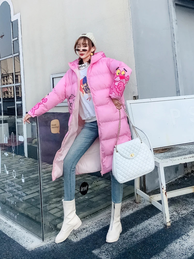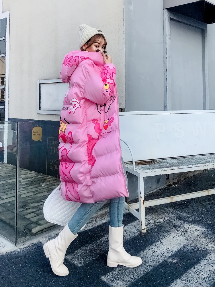 Black Friday Sale Pink Panther Women Parkas 2020 Winter Women Hooded Parkas Streetwear Loose Cotton Padded Coat Lovely ZQY2219