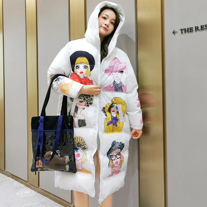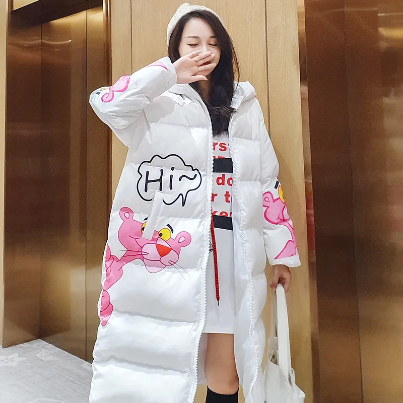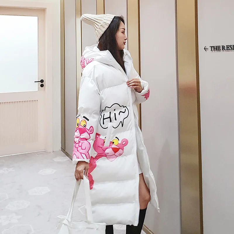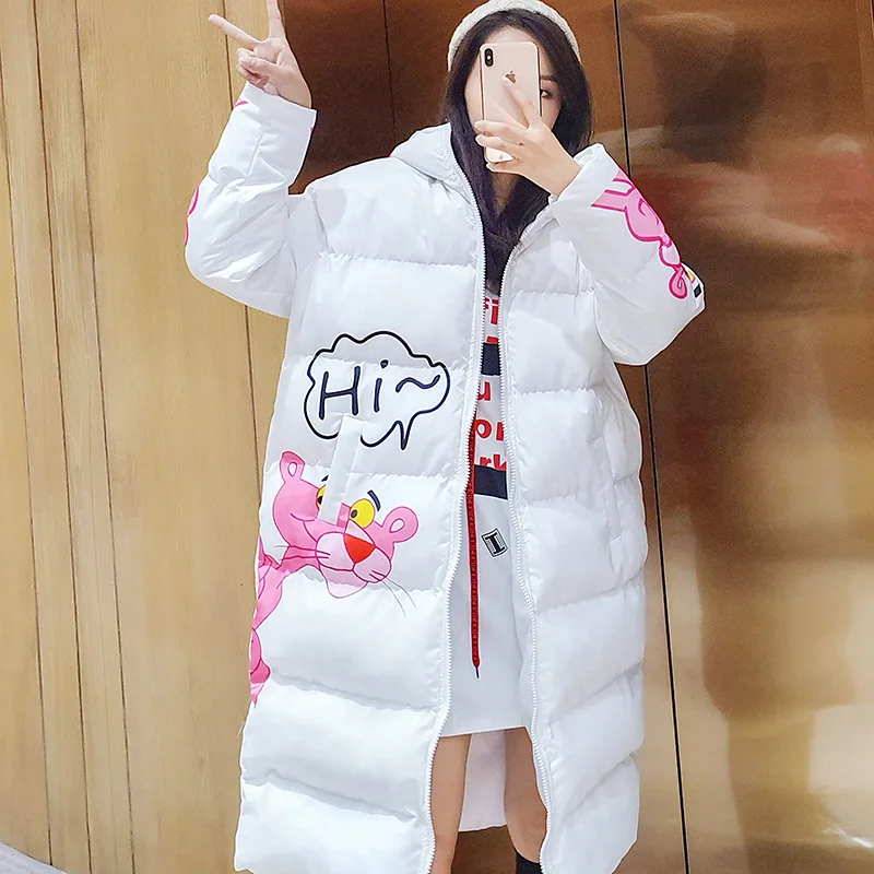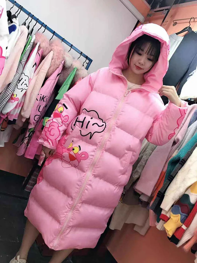 Black Friday Sale Pink Panther Women Parkas 2020 Winter Women Hooded Parkas Streetwear Loose Cotton Padded Coat Lovely ZQY2219